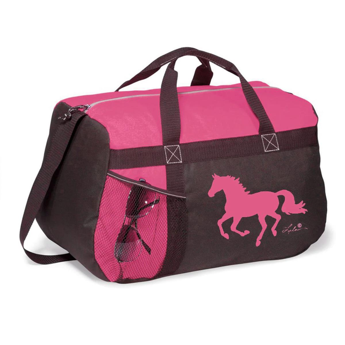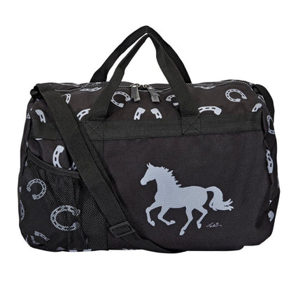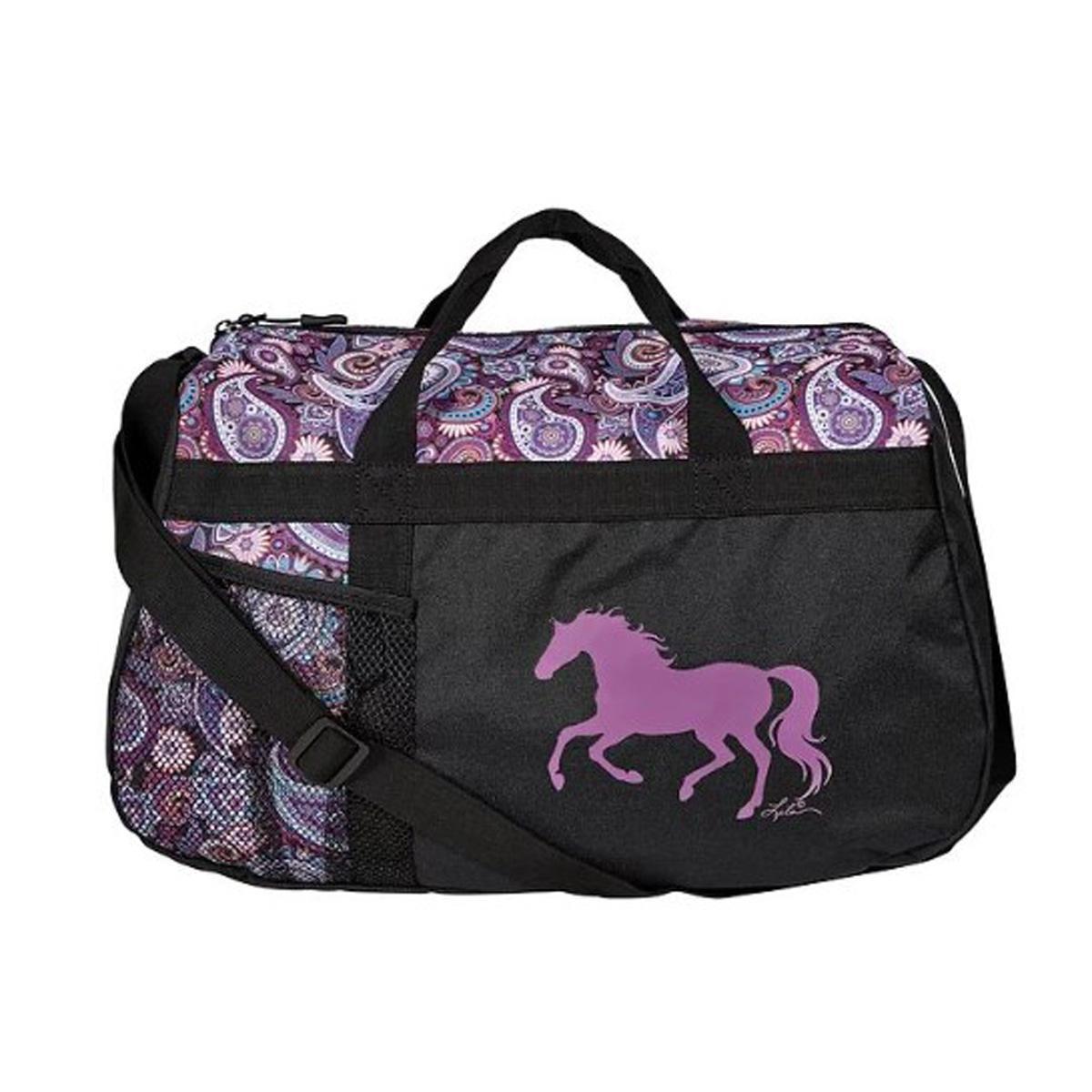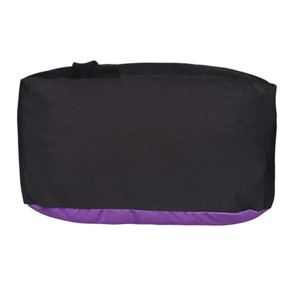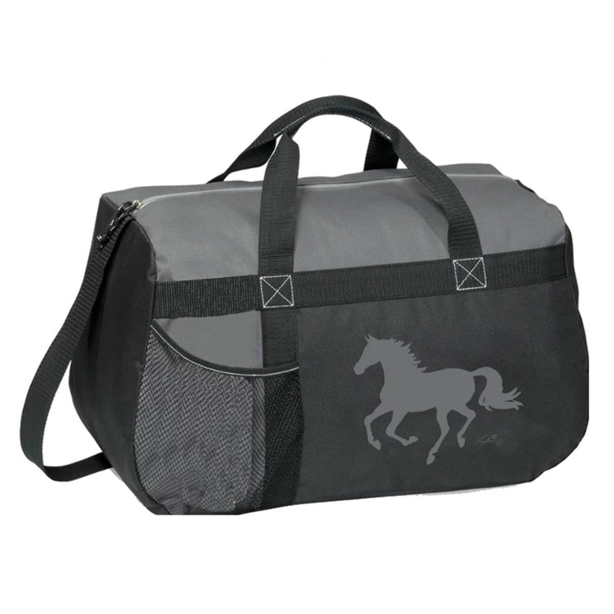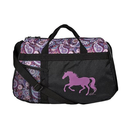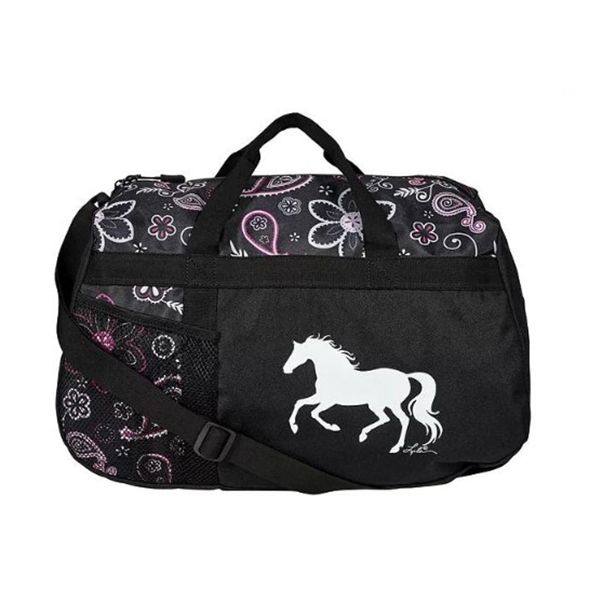 Designed with an inside divider pocket & front mesh pocket for easy organization. This stylish duffle is ready for traveling with the adjustable shoulder strap and grab handles. Measures 18"L X 11"H X 9"W