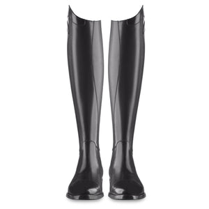 EGO7 Aries, full-grain leather tall riding boots with stitched toecap, back zipper, and Spanish topline: modern design combined with high-end style. All EGO7 models have a rear elastic band. This ensures maximum comfort, freedom of movement, and a glove-like, made-to-measure fit -and look- to any calf, together with extreme wear resistance and easy care of the innovative E-tex material. The full-length panel protects effectively the inner calf and guarantees perfect contact with the horse.