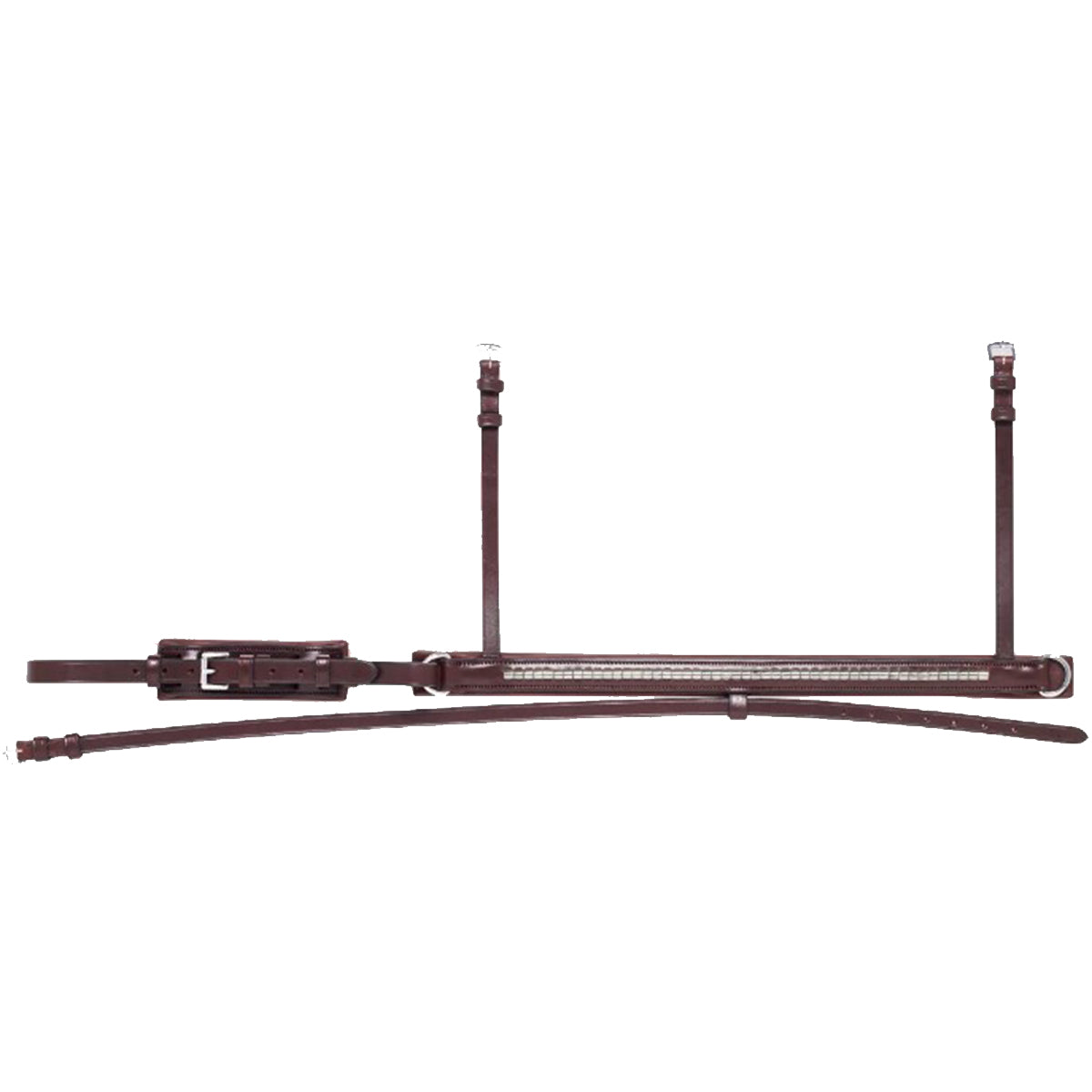 We love the Equiline gold clincher flash noseband with crank for precise adjustment. Wide, soft padded tab under closing buckles to avoid any rub or pinch.