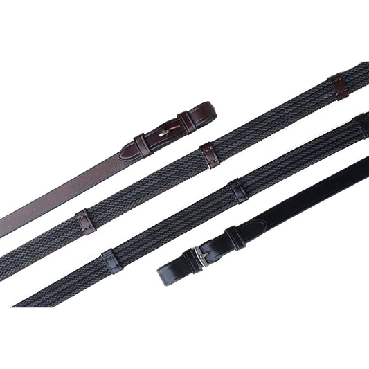 Black Oak by KL Select Pebble Grip Reins with Stops