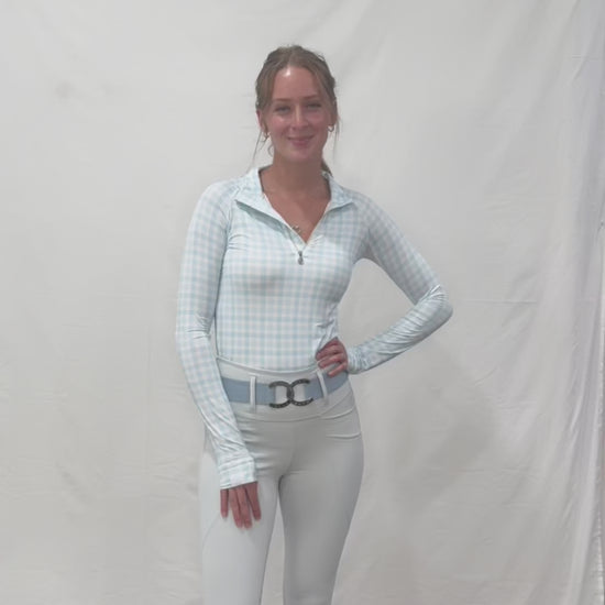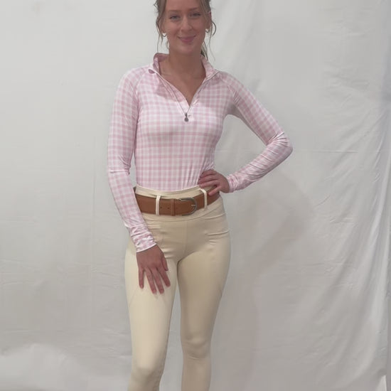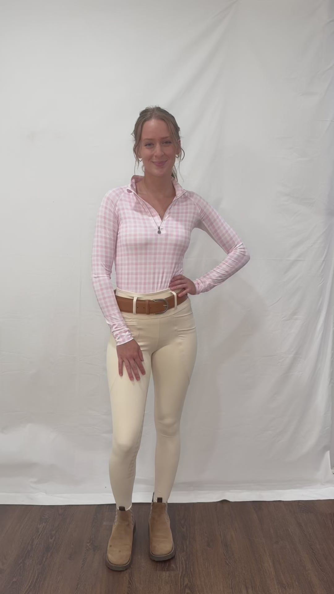Dapplebay Gingham 1/4 Zip Long Sleeve Riding Top
