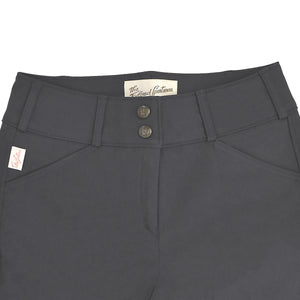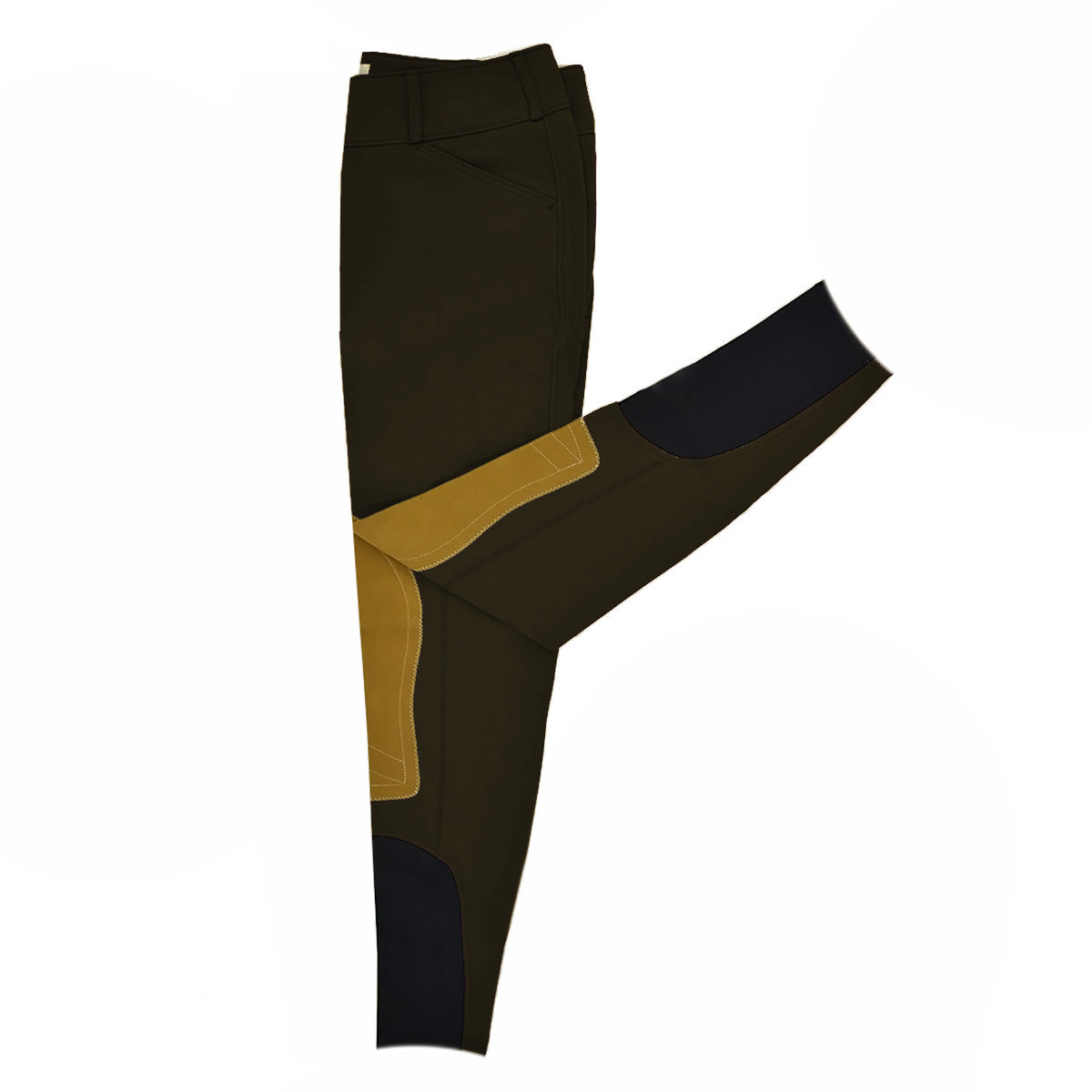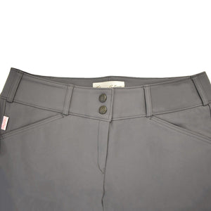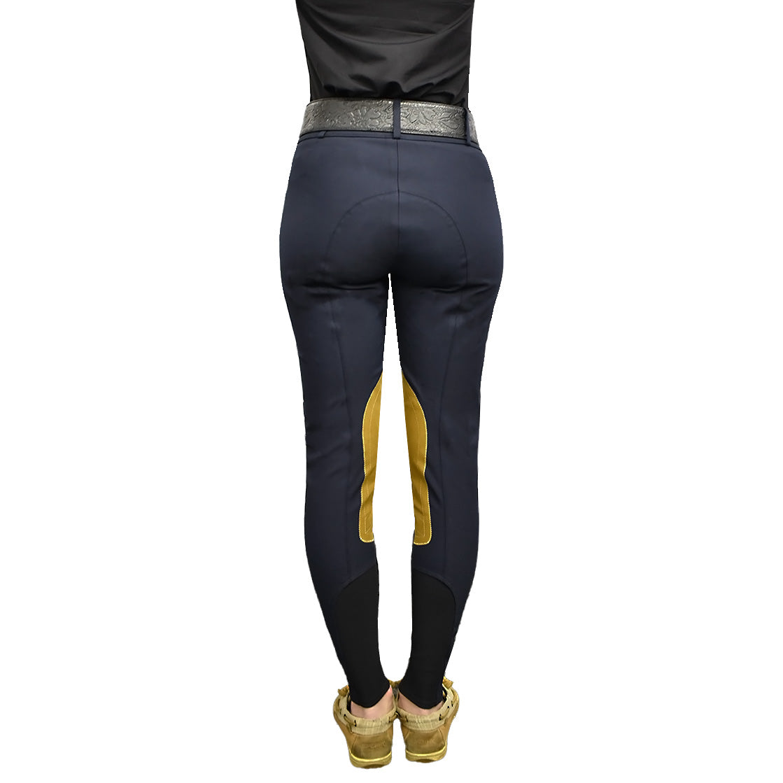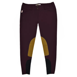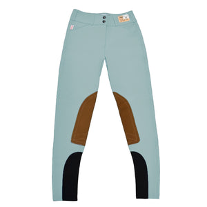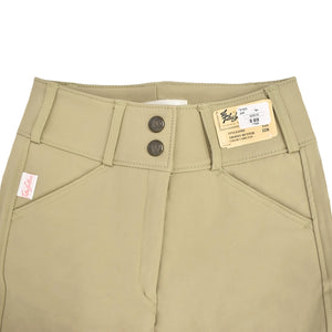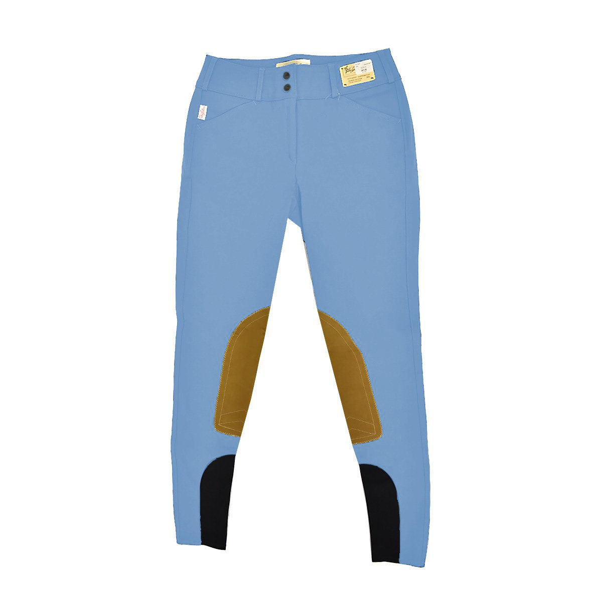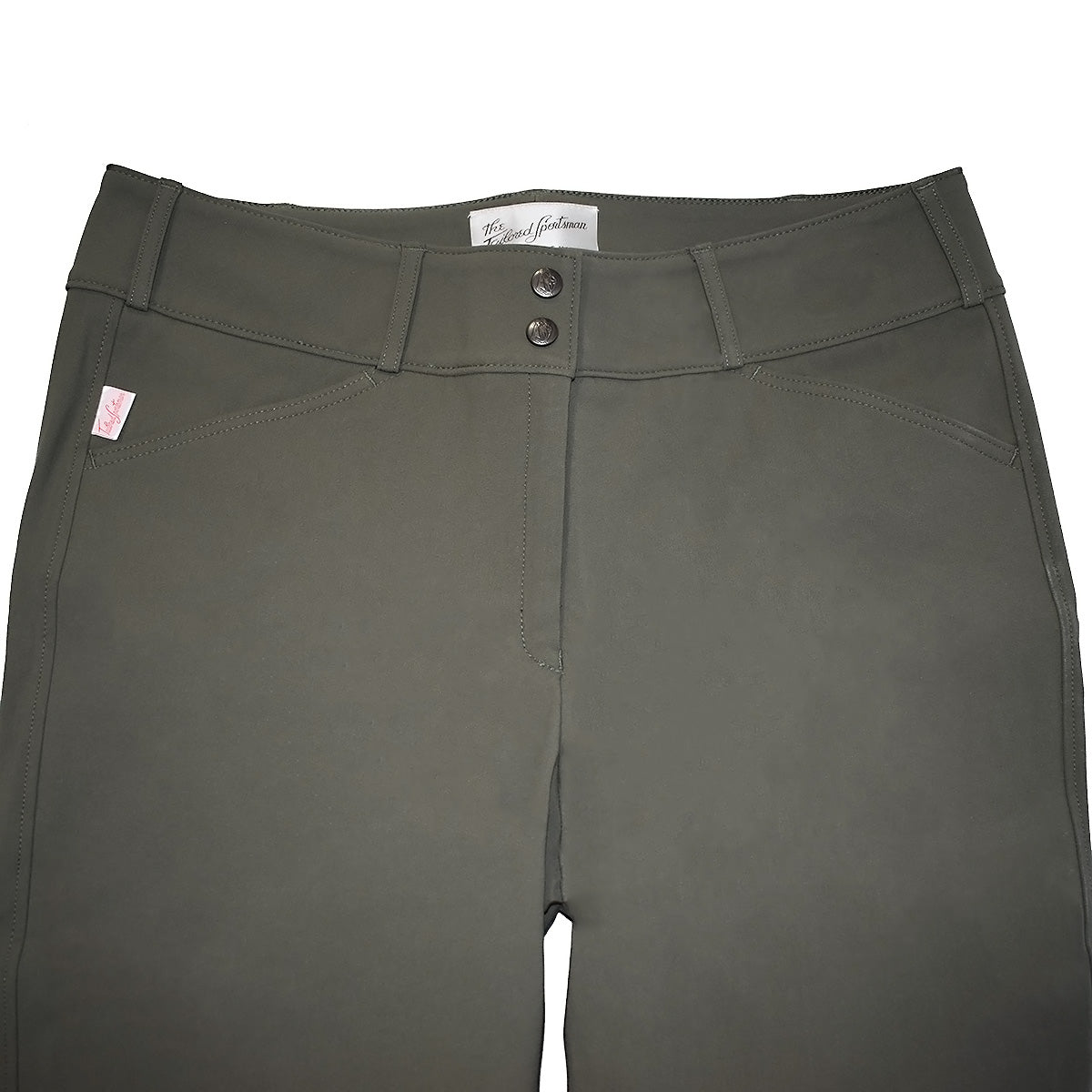 The new fabric allows for a form-fitting figure-flattering look while maintaining its shape and moving with you while you ride. Lightweight, woven 73% cotton/20% polyamide/7% Lycra, with four-way stretch for comfort. Classic European leg seams on the outside of the breech, vintage clarino knee patches, front zip, front slash pockets, and belt loops.