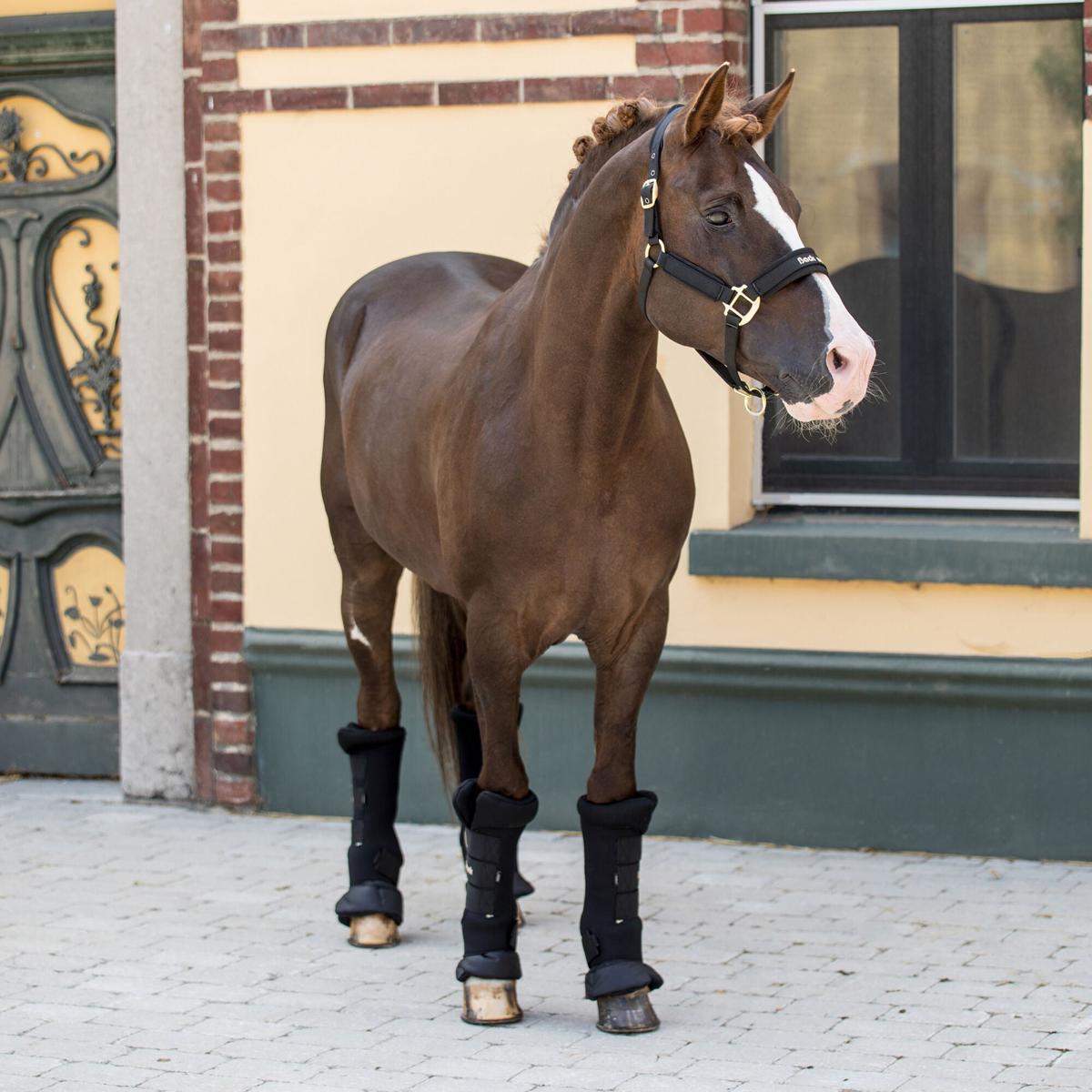 They are slightly higher at the top to minimize pressure on the tendon and provide increased freedom of movement to the horse’s legs. The inner pad has been fitted at the bottom with a reinforced water-repellent fabric that covers the top of the hoof, does not collect shavings, and stays dry.