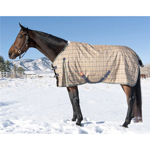 Its' features include gusseted shoulders, bias surcingles, elastic leg straps, and a tailpiece. The outer shell is a 1,500-denier polyester rip-stop fabric that can take an incredible amount of abuse while the satin smooth lining polishes the horse's coat. A waterproof and breathable membrane bars water penetration yet allows water vapor from perspiration to pass through to the outside. The horse stays warm, dry, and comfortable.