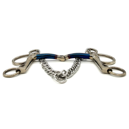 The BLU steel's inherent sweetness is a key benefit, as it encourages horses to salivate more. Increased salivation results in a softer, more responsive mouth, facilitating better acceptance of the bit and enhancing the overall comfort for the horse during riding. This sweet quality of the BLU steel makes this bit particularly effective for horses that are otherwise hesitant or resistant to bit acceptance.