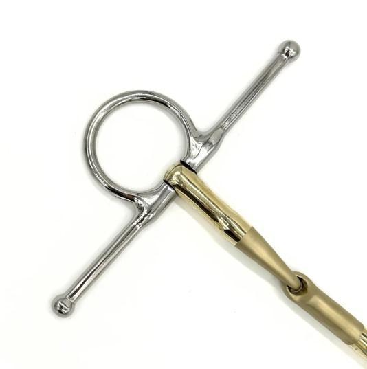 The ContourEase Full Cheek Bit is thoughtfully engineered with a gently rounded, oval-shaped mouthpiece that increases the contact surface on the tongue, promoting a softer and more reassuring feel. The sandblasted center section creates a hydrophilic response, encouraging salivation for greater comfort, while the golden brass material naturally supports salivation. This design helps sensitive horses relax and respond willingly.