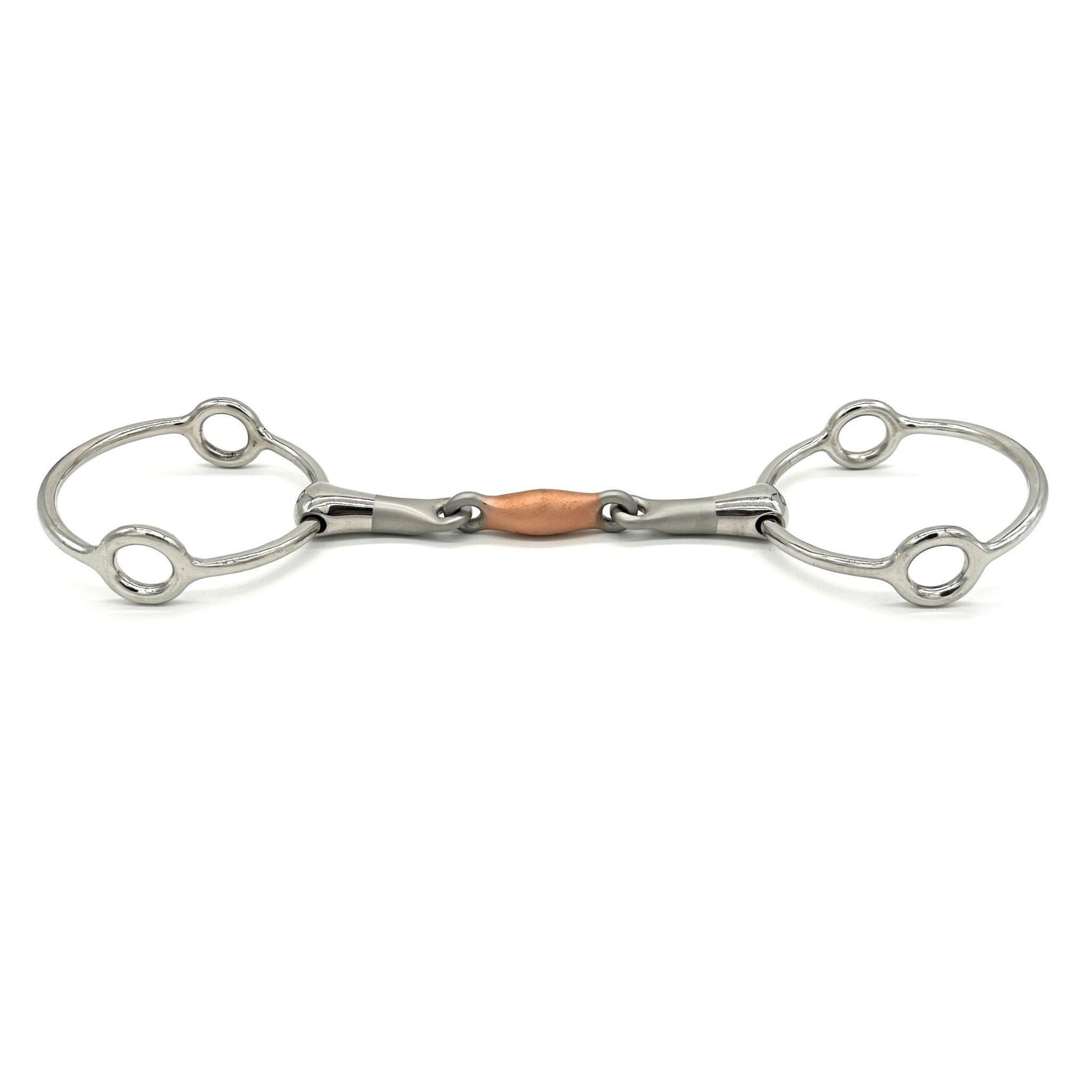 Thoughtfully crafted for a kinder connection, the Copper LinkX Balding Gag Bit combines angled joints with an elongated copper link to distribute gentle, continuous pressure across the tongue.