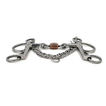 The Hexagon Copper Cricket Roller Pelham Bit uniquely combines the benefits of a hexagonal mouthpiece with the dynamic functionality of a copper cricket roller, all within the versatile framework of a Pelham design.