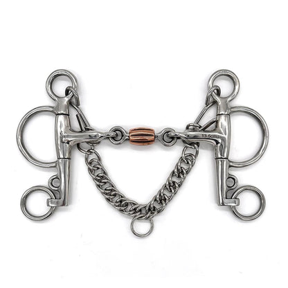 The Pelham design of the bit combines the control of a curb bit with the direct action of a snaffle. This combination offers riders leverage and control. The bit’s design makes it especially suitable for experienced riders who can skillfully utilize the combined effects of the hexagonal mouthpiece, copper roller, and Pelham cheekpiece.