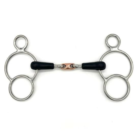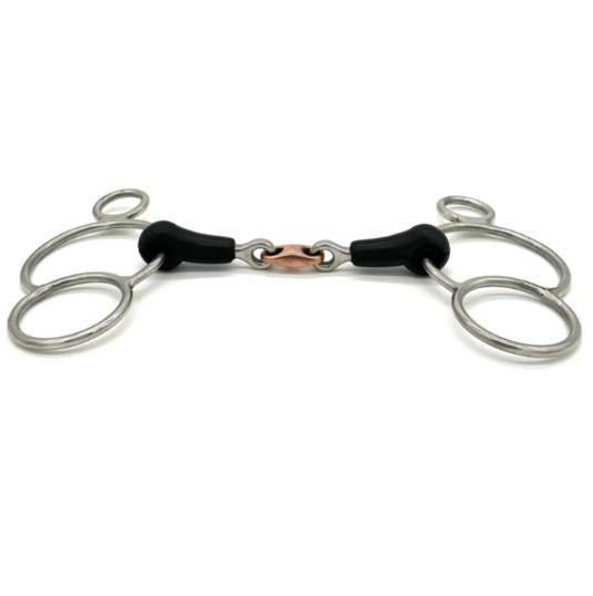 The Rubber Copper French Link 2 Ring Bit is a versatile choice for riders seeking a combination of leverage and flexibility. This bit features a copper French link, which promotes salivation and enhances communication between horse and rider. The rubber mouthpiece delivers a soft and inviting feel, making it ideal for horses with sensitive mouths.