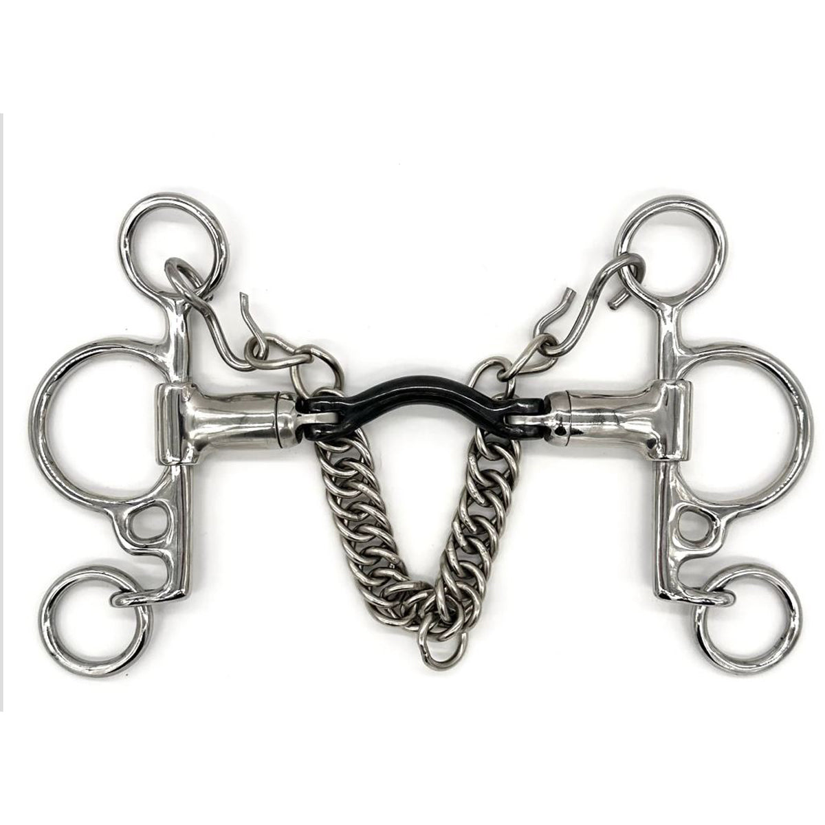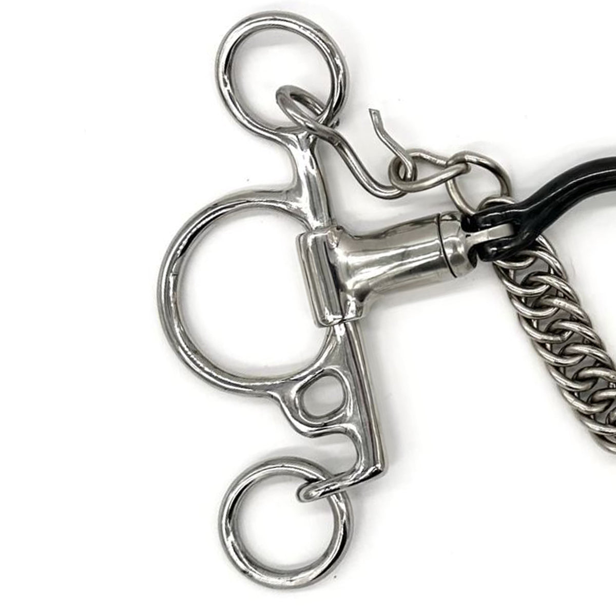 The premium sweet iron material used on the port of this bit directly targets salivation stimulation points on the horse's tongue. The increased salivation stimulates the horse's mouth therefore making the horse more comfortable. We have designed this mouthpiece to be ported, double hinged, and rotating to provide a great level of comfort as well as control.