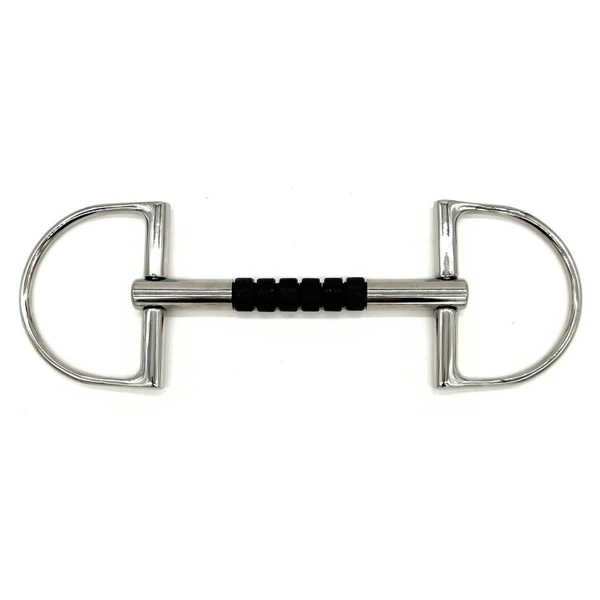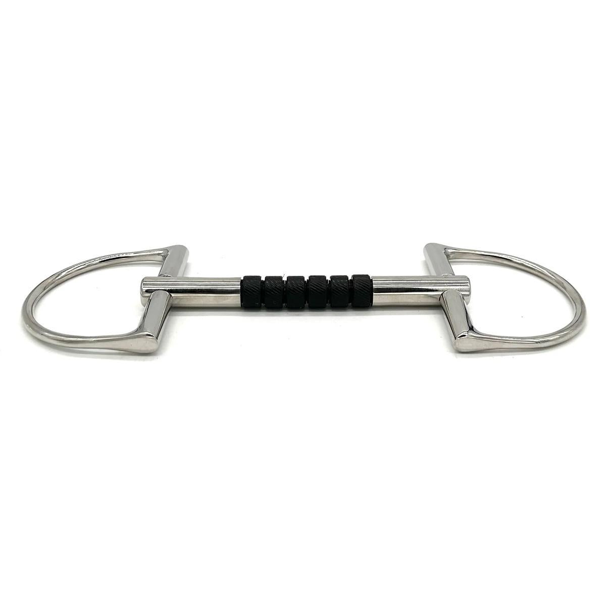 The TeffleX Six Roller Dee Bit, an AJR Sport original design, is made from durable Teflon material with a light textured pattern. The straight mouthpiece and rolling action stimulate the horse's jaw and tongue, encouraging relaxation and discouraging the tendency to lean on the bit.