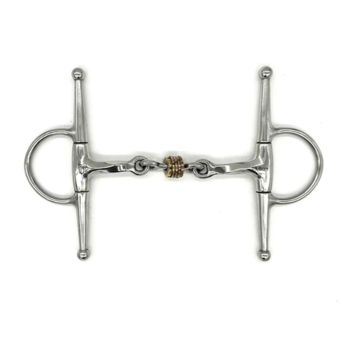 The Twisted Brass Disc Full Cheek Bit is expertly designed for riders who prioritize both effective control. This bit features a twisted mouthpiece, equipped with brass roller discs. These discs engage the horse, promoting relaxation and comfort.
