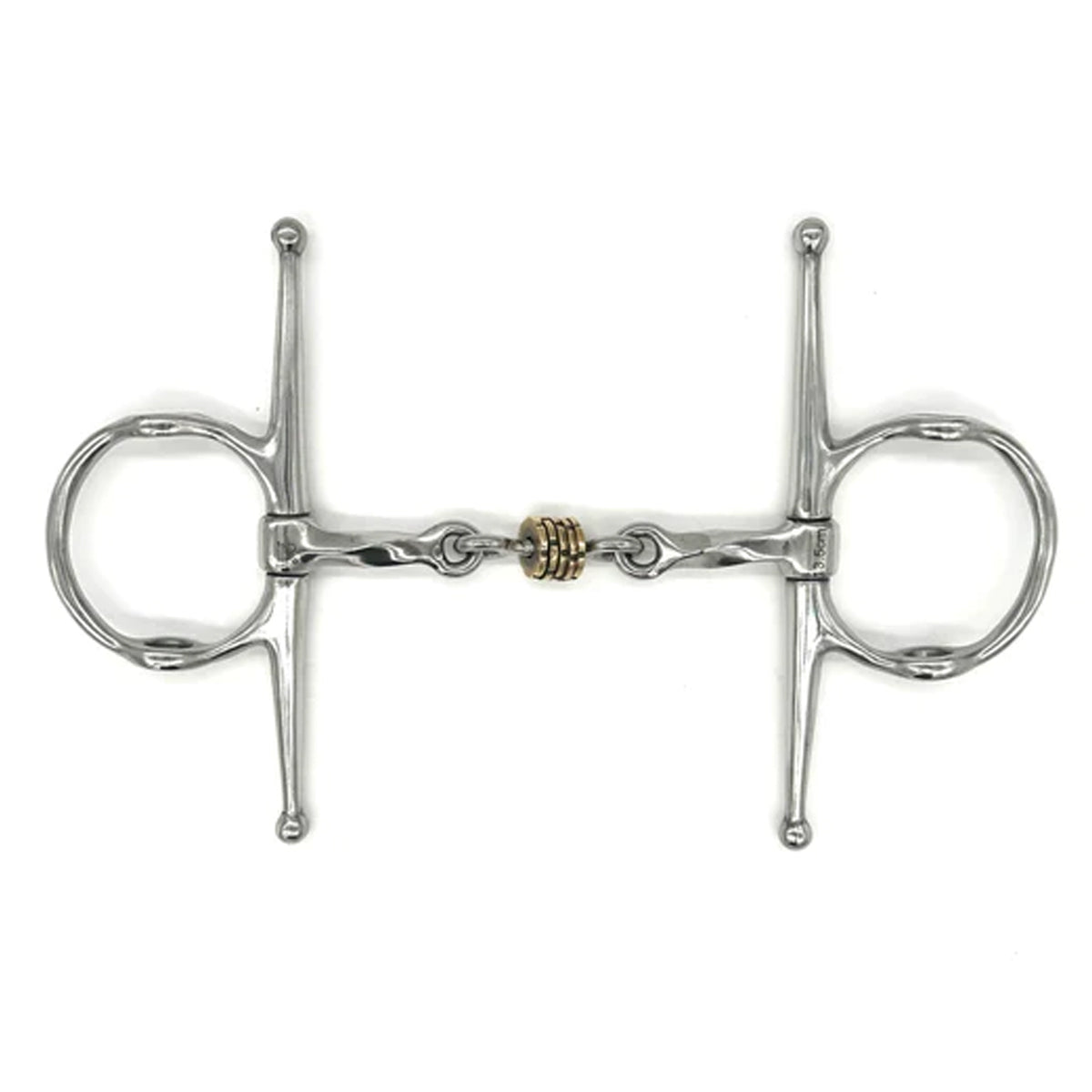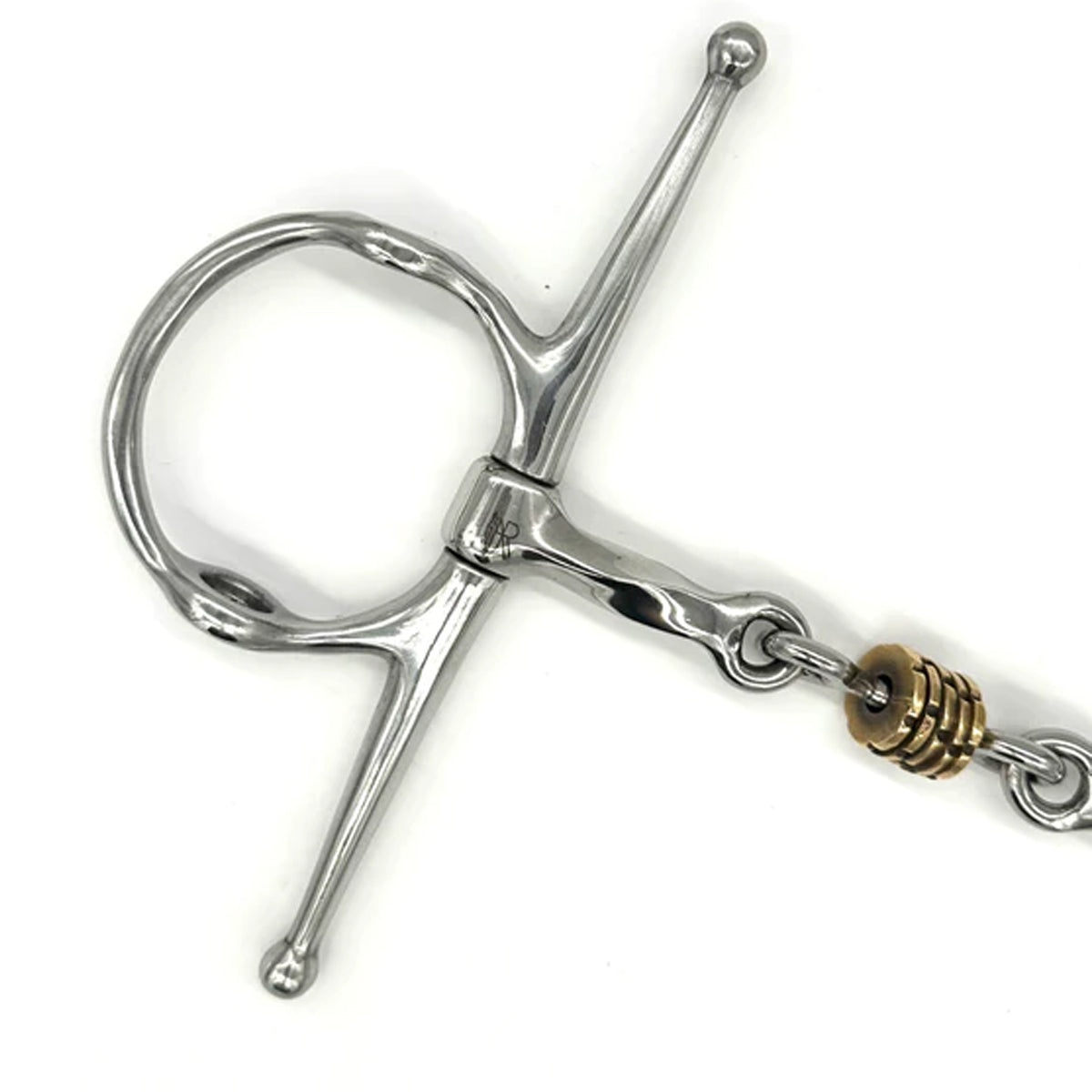 We love the unique combination design of Twisted Brass Disc Nelson Gag Bit. It is an innovative choice for riders seeking effective control while maintaining gentle action for their horse. This bit incorporates the unique combination of a twisted mouthpiece with brass disc accents, set within the dynamic Nelson gag design.
