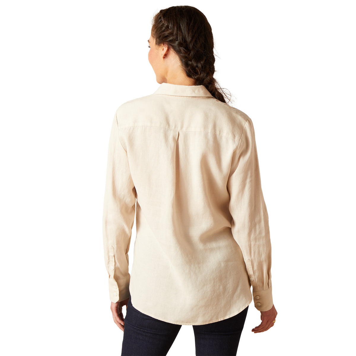 We love this Ariat Women's Cazadero Blouse because of the wrinkle free linen and elegant style! This beautiful linen shirt is lightweight and breezy, perfect for the daytime or dressing it up for dinners out. Choose from two sophisticated color options.