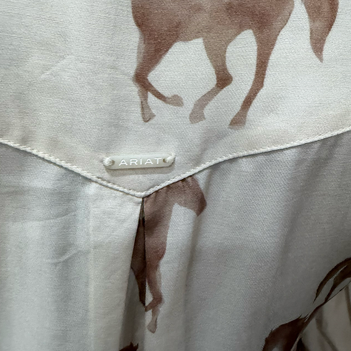 - Ruffles at collar and hem with Western-inspired yoke detail