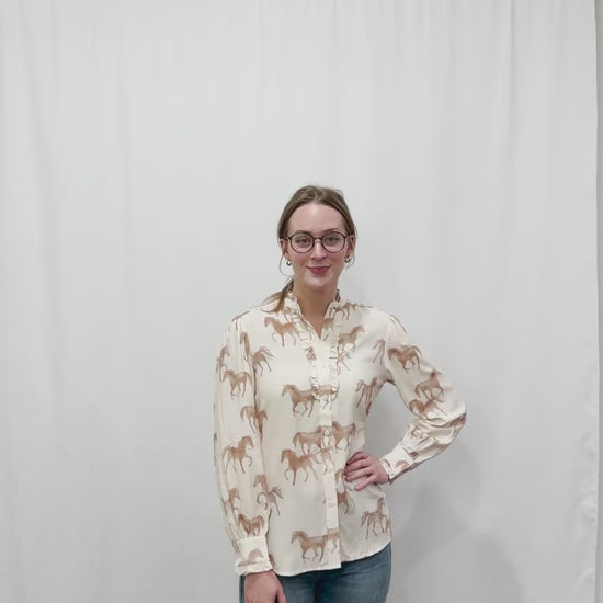 The collar is ruffled with a Western-inspired yoke detail. Made from 58% Rayon and 42% Viscose, it's light and airy. You can choose to wear it on its own, or paired with a jacket for layered warmth. It's perfect for everyday wear with a familiar, effortless fit!