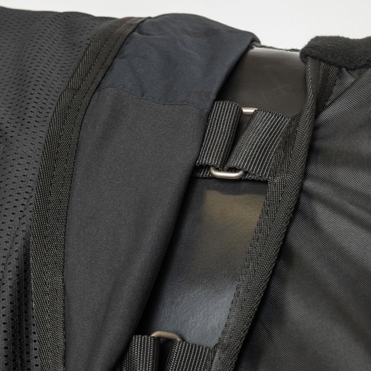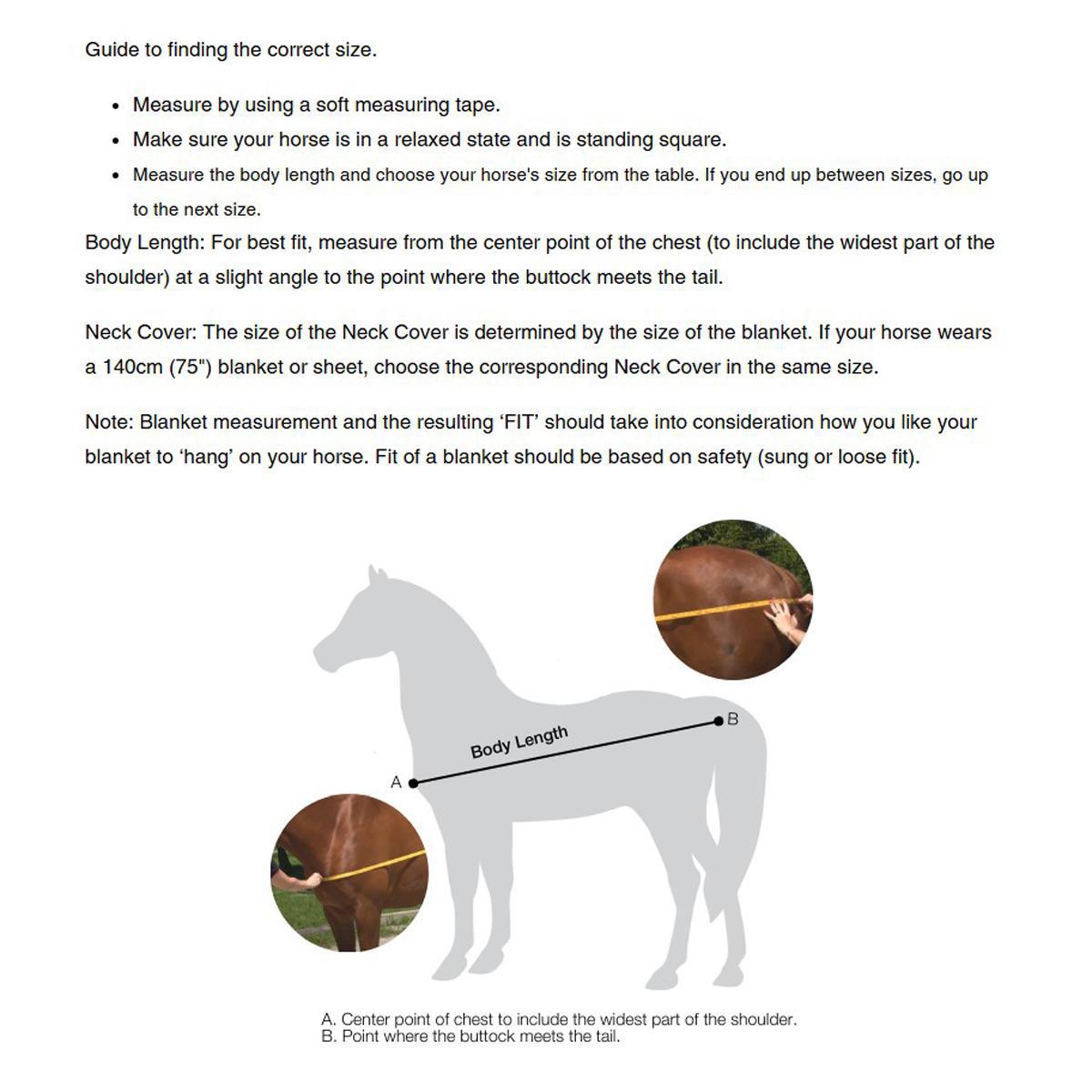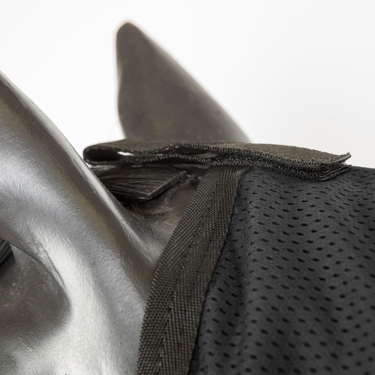 The neck cover can be adjusted for a perfect fit using the three hook and loop closures on the underside. The tightly woven fabric over the mane along with a fleece lining at the neck reduces the risk of chafing.