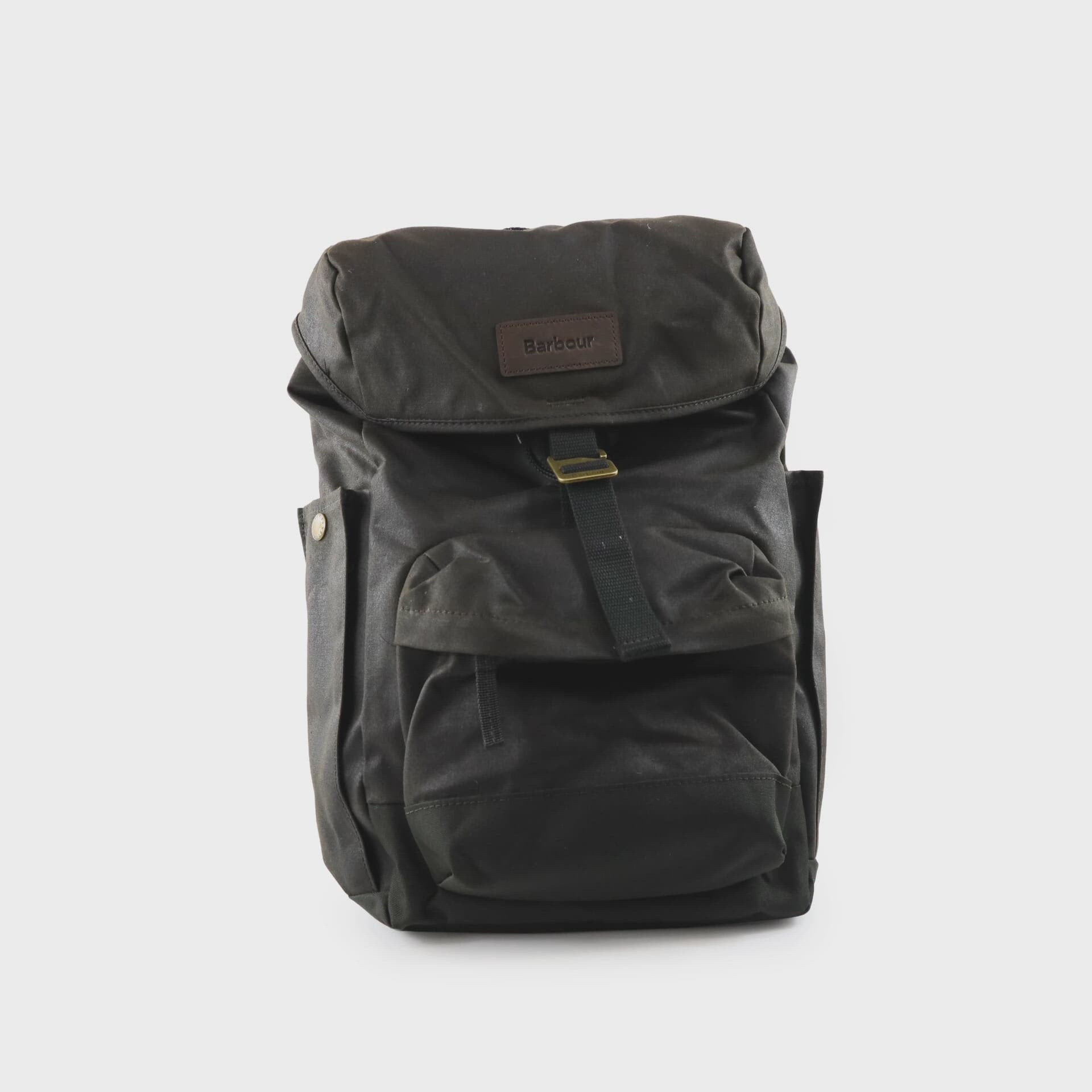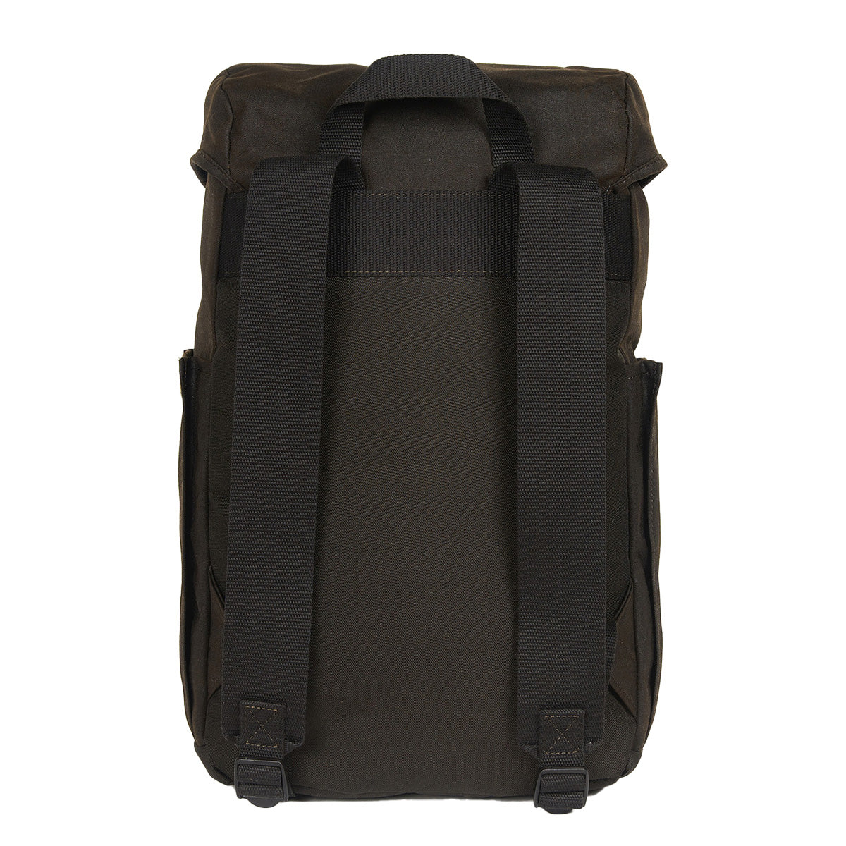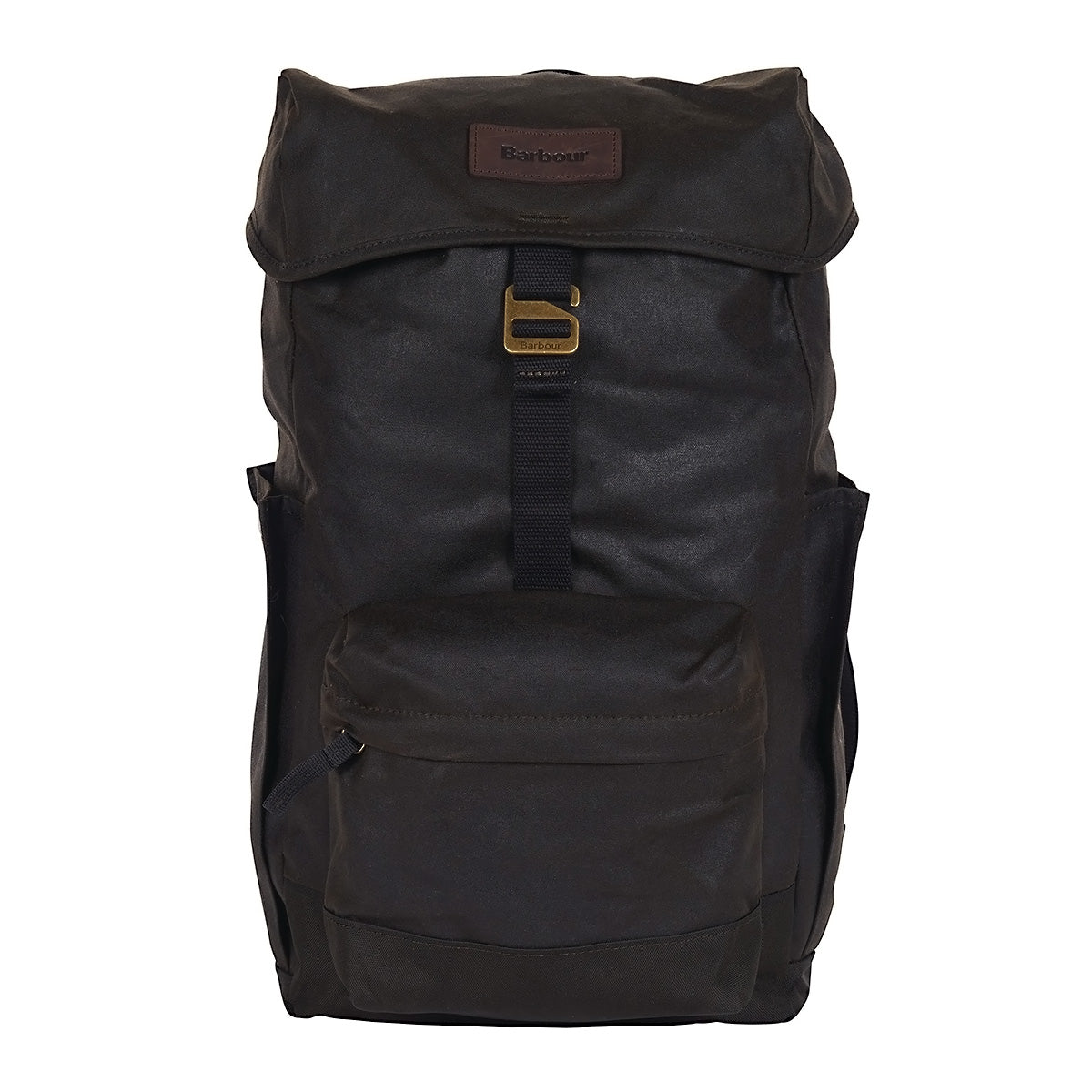 The Barbour Essential wax backpack is crafted from 10oz waxed canvas with hook fastening flaps over a drawcord opening. An outer zipped pocket and adjustable webbing straps add premium quality while two outer side pockets ensure extra storage. This backpack is finished with an embossed Barbour badge to the outer front.