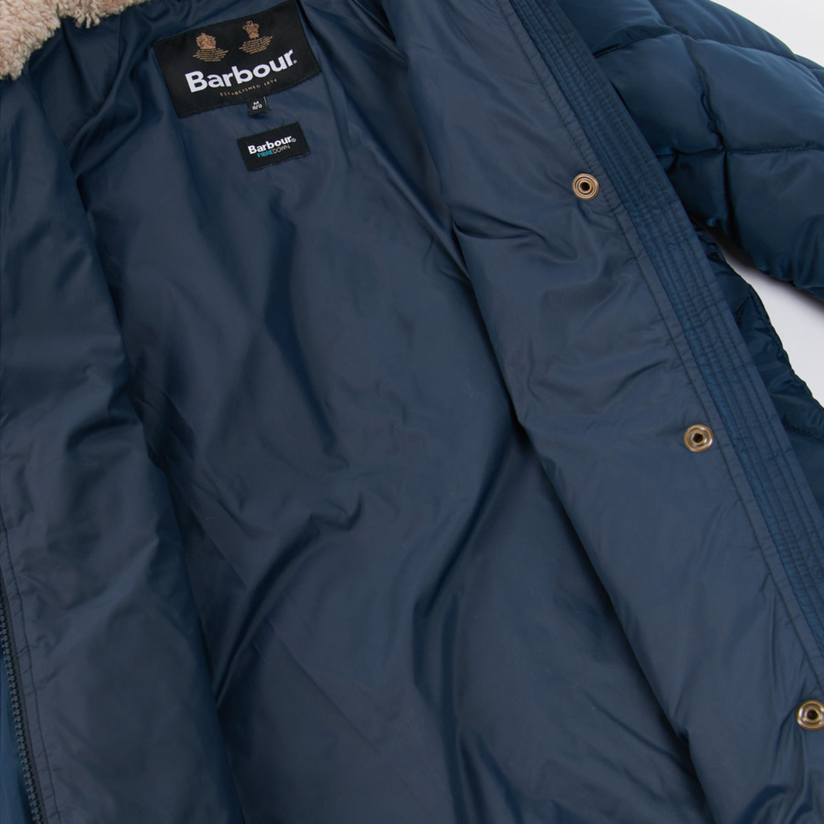 We love the Barbour Girl's Sandyford Quilt Jacket because it is styled with a studded front fastening and large hood. This jacket also boasts a cozy lining.