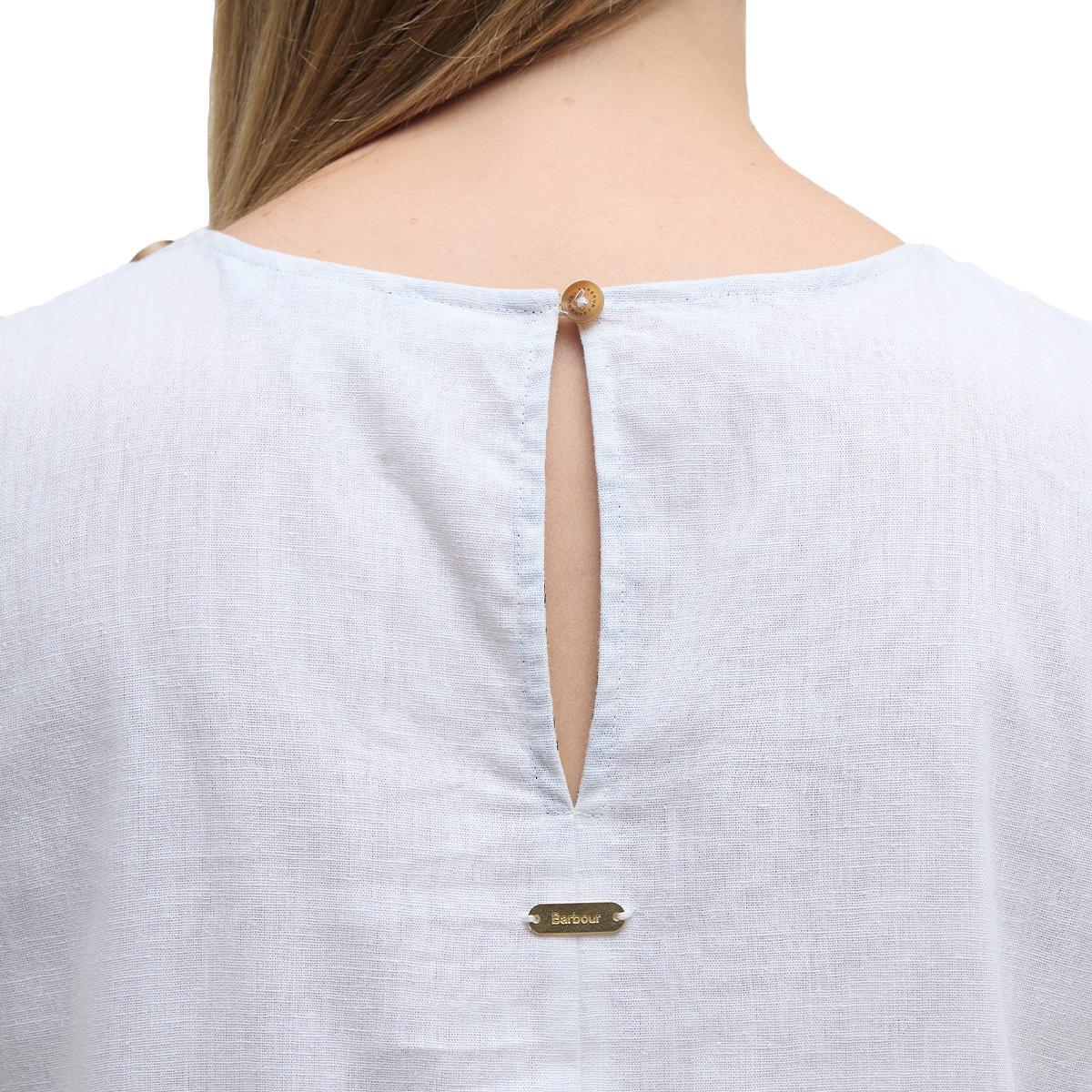 Enhance your wardrobe with the Barbour Lucy Mini Dress. This A-line dress features a flattering mid thigh length and is made from a light weight fabric, providing both comfort and style. The button details on the shoulder and Barbour branded embellishment on the back add a touch of elegance. With a single button closure on the back, this dress is a universal staple!