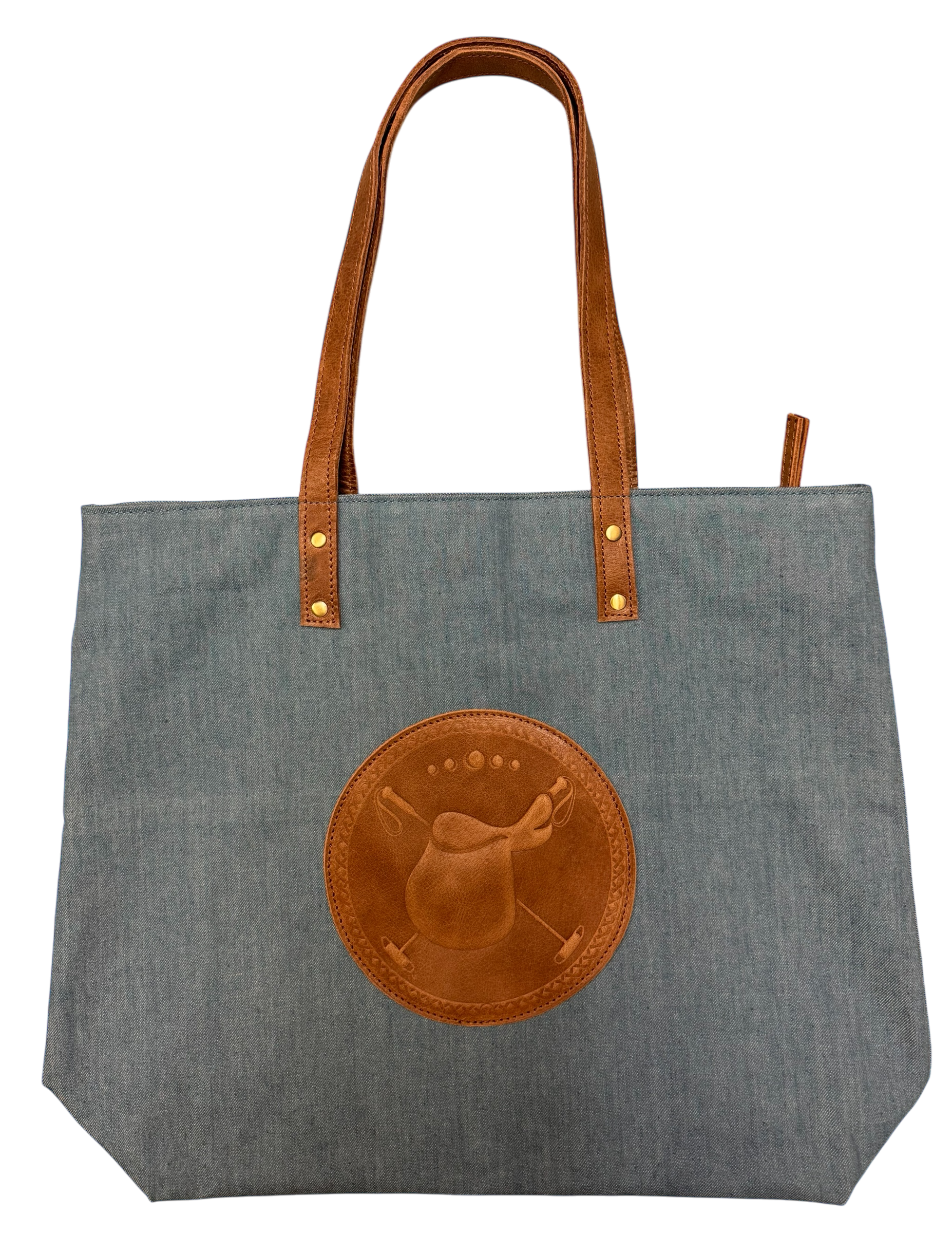 Introducing the Tucker Tweed Equestrian Barn Bag made with garment-dyed heavy duty canvas or NEW DENIM, featuring two-tone, remnant leather accents. Responsibly and resourcefully made by hand, this is the perfect tote bag for carrying essentials into the barn, away from the market and around the show ground. Durable and practical with reinforced stitching, this is the ideal bag for the active equestrian.