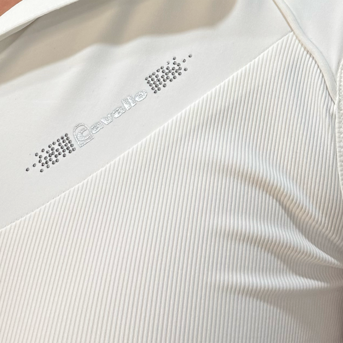 The Naho features a slanted front shoulder yoke with narrow piping. Elaborate Cavallo artwork made of sparkling crystal stones in the center back, as well as Cavallo print in silver look with sparkling crystal stones on the front yoke.
