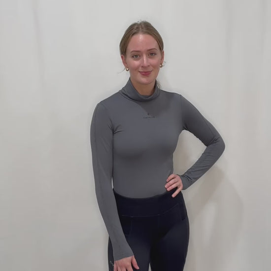 The Racina shirt is a fitted turtleneck shirt made from functional fabric, a blend of polyester and elastane. It moves with your body, making it a comfortable option for the on-the-go rider.