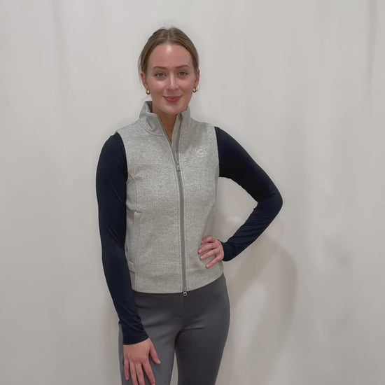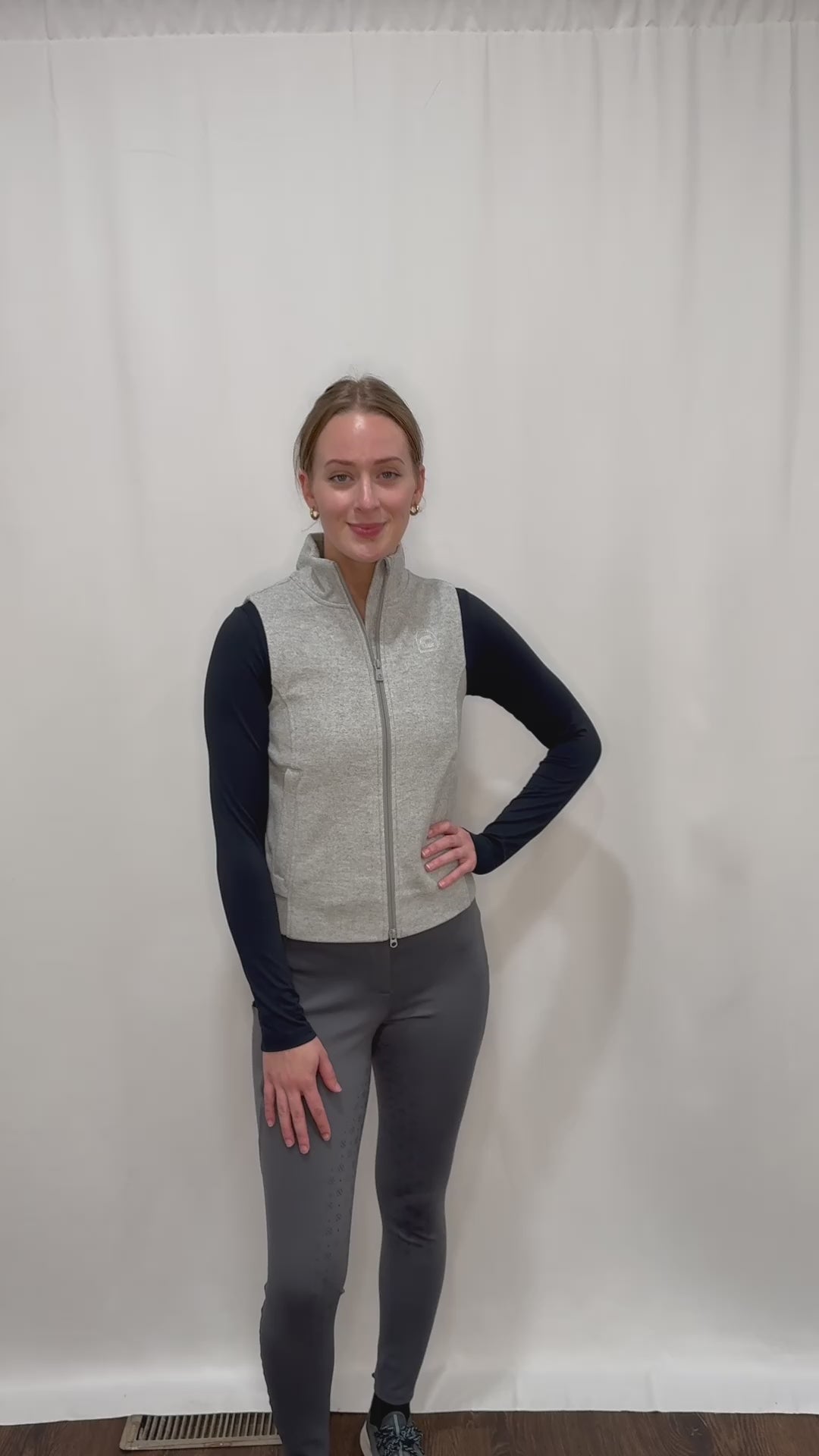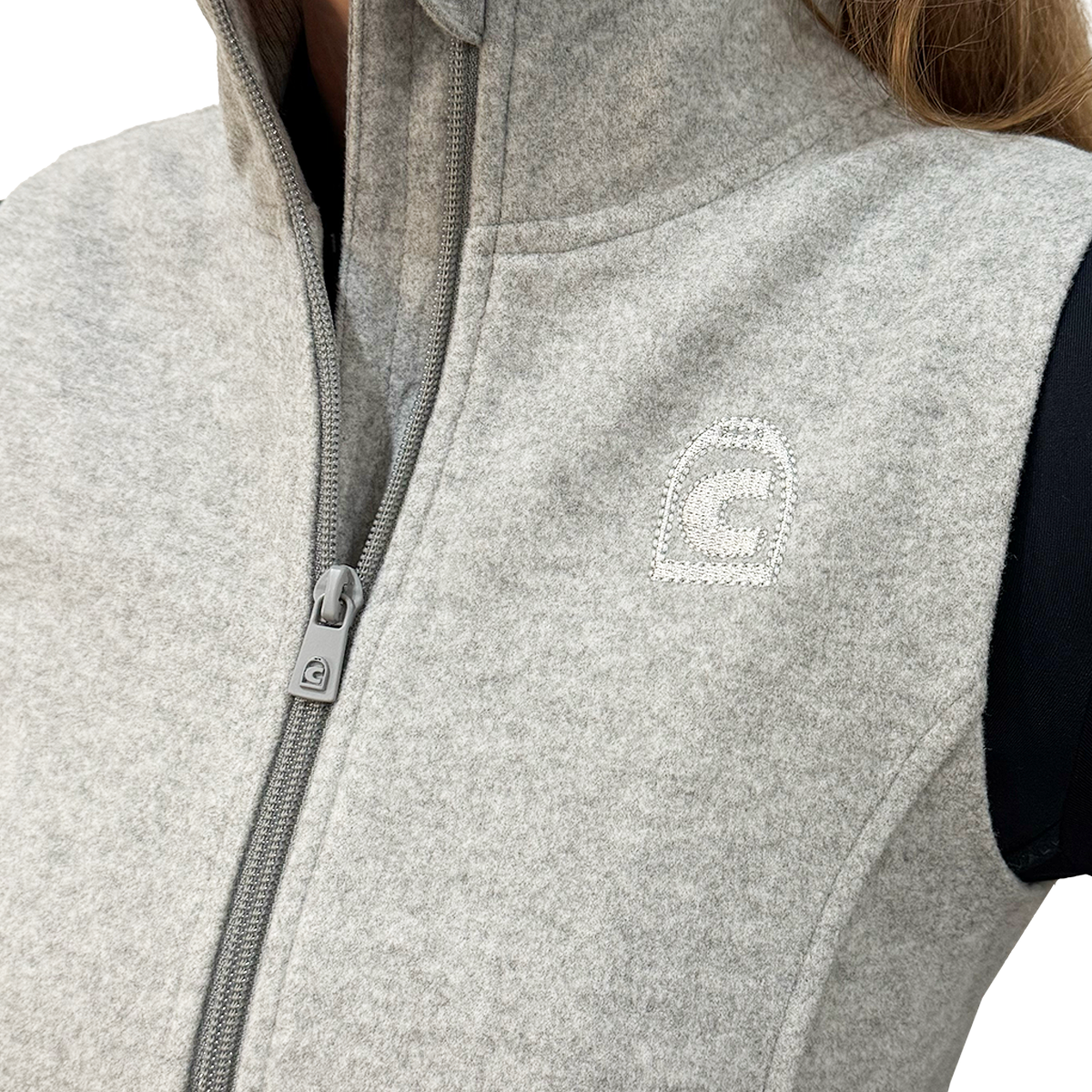 The Rebeca vest is a stand-up collar vest with an additional ribbed collar in black to increase comfort. The outside fabric has a high-quality wool look without the real material.