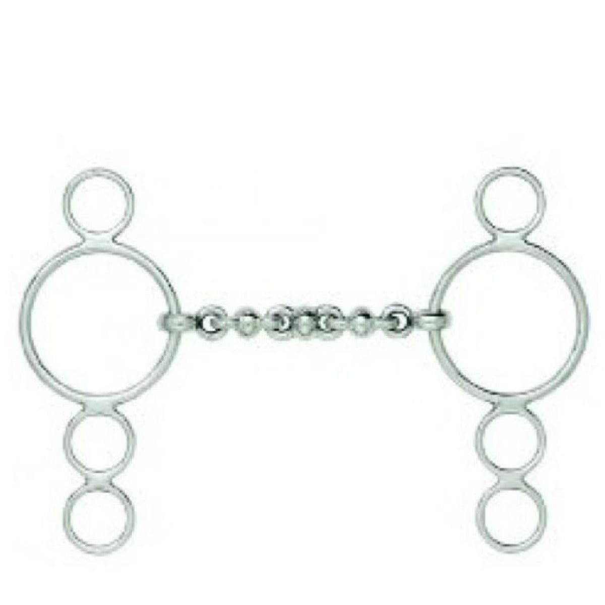 We love the Centaur Pessoa Waterford Elevator Gag Bit because it makes your horse salivate, relaxing the mouth and jaw.  This bit is not rigid which makes it a great choice for a horse that likes to take hold of the bit.  The elevator gag helps bend the horse at the pole and provides turning control. This bit is for experienced hands.