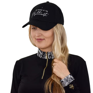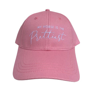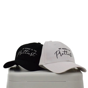 6-panel, unstructured baseball hat with our signature 'My Horse is the Prettiest' embroidered in white or black stitching.