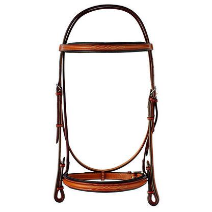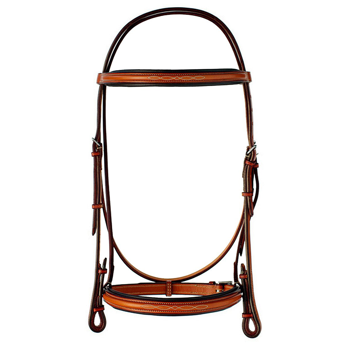 We love this bridle because it exudes quality and durability. The headpiece, noseband, and browband, provide comfort and utility. This bridle’s style is elevated with fancy stitching that complements the hardware.