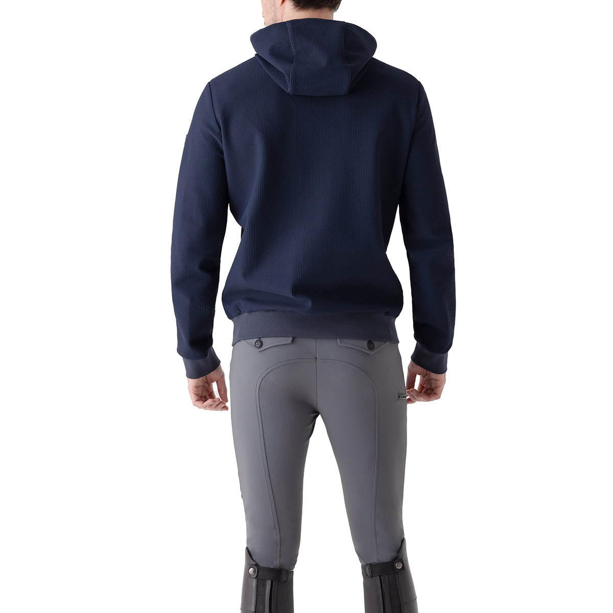 We love the unique material and thoughtful design of this Equiline men’s hooded tech jacket with soft and stretch rib on cuffs and bottom. It has an insulation system with ultra light eco-duvet padding made with post consumer recycled pet bottles. Two-way central zip and two zip pockets. Technical and performing fabric on hood, back side and sleeves. This multi-layer construction provides ideal protection during mid-season training.