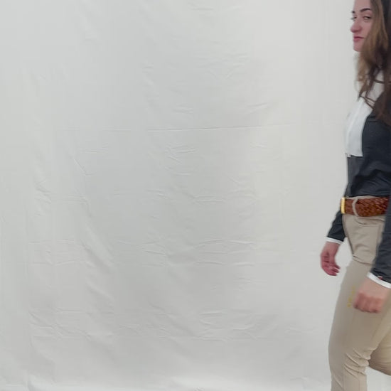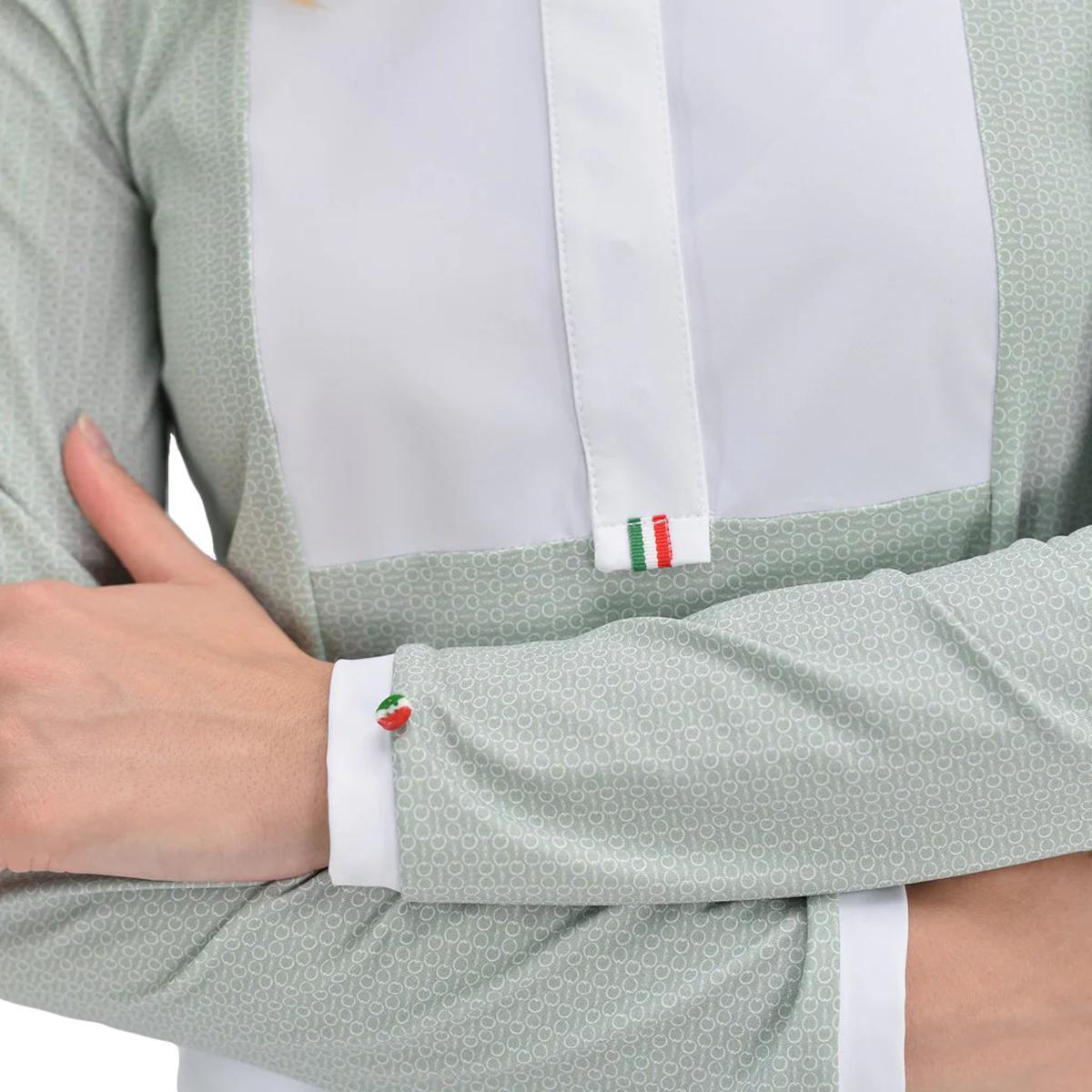 Alina combines an innovative and modern microfiber fabric with a classic equestrian style white lycra bib in an elegant, comfortable long-sleeved competition show shirt. Suitable for all seasons thanks to its multi-stretch breathability, silky moisture-wicking feel, and UV protection.