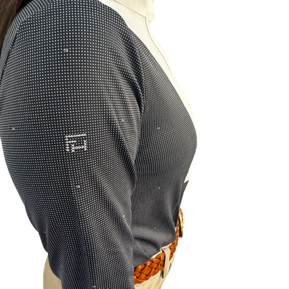 We love For Horses Women's Alina Long Sleeve Show Shirt which is a new version of the Alina. The rhinestone logo on the sleeve, and the attention to detail you can see in this shirt's beautiful design, giving you a gorgeous show shirt!
