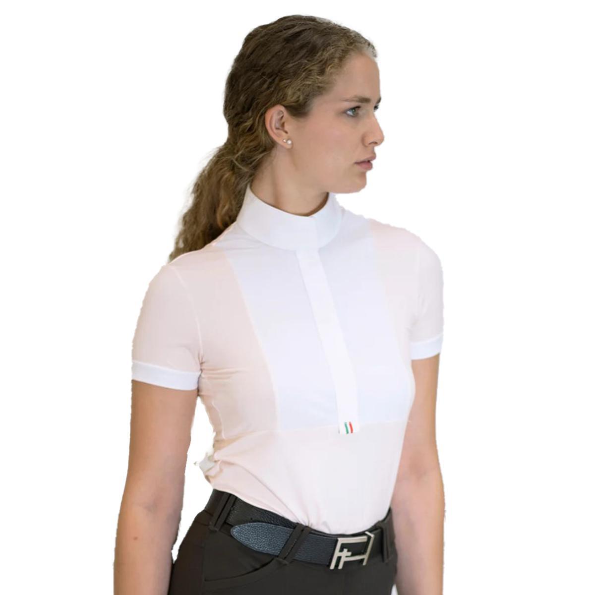 Daphne is elegant, comfortable short-sleeved competition show shirt combines an innovative and modern fabric with a classic equestrian style. Suitable for all seasons thanks to its breathability, silky moisture-wicking feel, and UV protection.