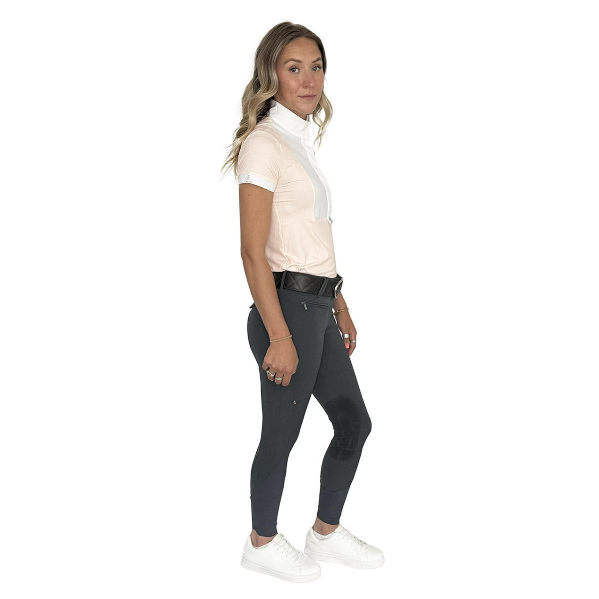 Daphne is elegant, comfortable short-sleeved competition show shirt combines an innovative and modern fabric with a classic equestrian style. Suitable for all seasons thanks to its breathability, silky moisture-wicking feel, and UV protection.