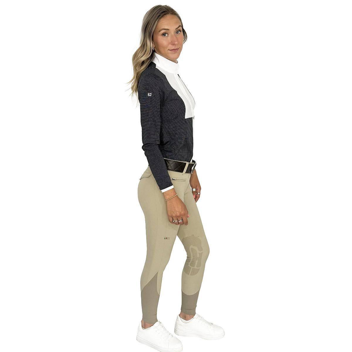 We love the For Horses's Emma breech for its modern look with a mid-rise waistline and back pocket flap design, feminine and flattering for all shapes and sizes. The uniquely tailored curved waistband allows for a comfortable fit, support and refined look. EMMA is made using a durable and resistant fabric that is breathable, moisture wicking and multi-stretch for complete ease of movement while riding. The long-lasting knee grip is shaped in an original FH stylized horse design, without seams for added comfort and closeness in the saddle. Ideal for all types of competitive riding, schooling and everyday wear.