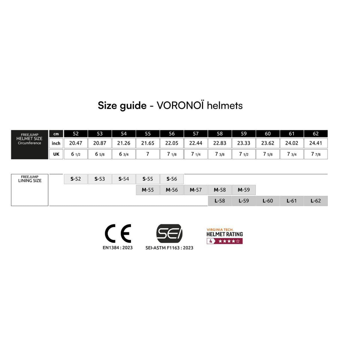 The inner lining of the Voronoï helmet is made from high-quality Italian fabric to maximize comfort, breathability, and head support. It can be unclipped and washed at will (wash at 30°C and tumble dry) to ensure comfort and hygiene. Sizes available: 52 to 62.