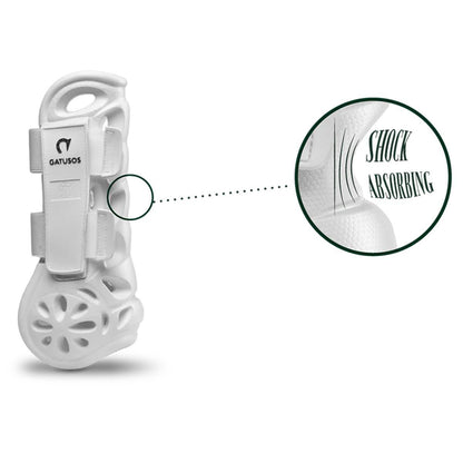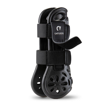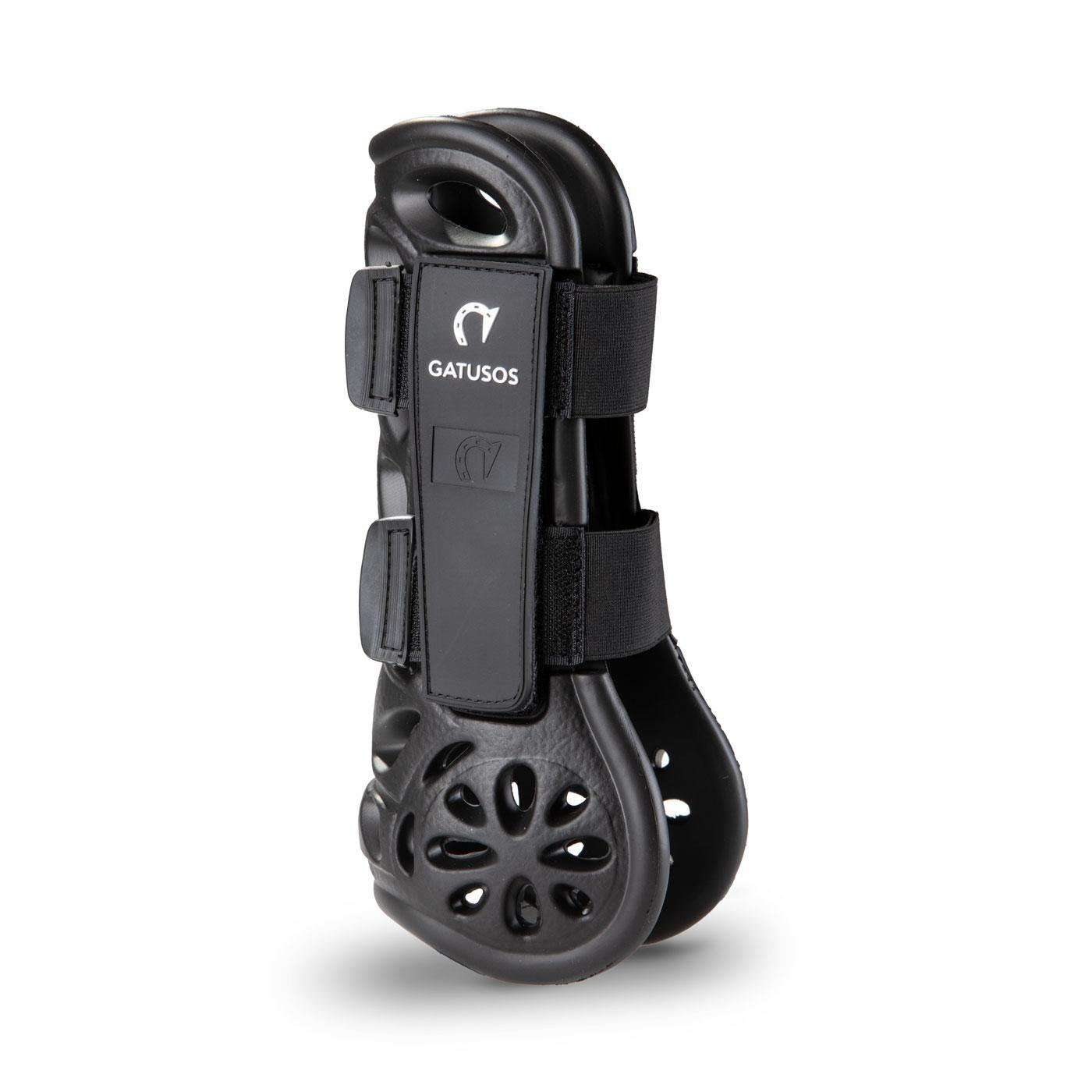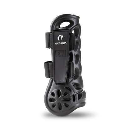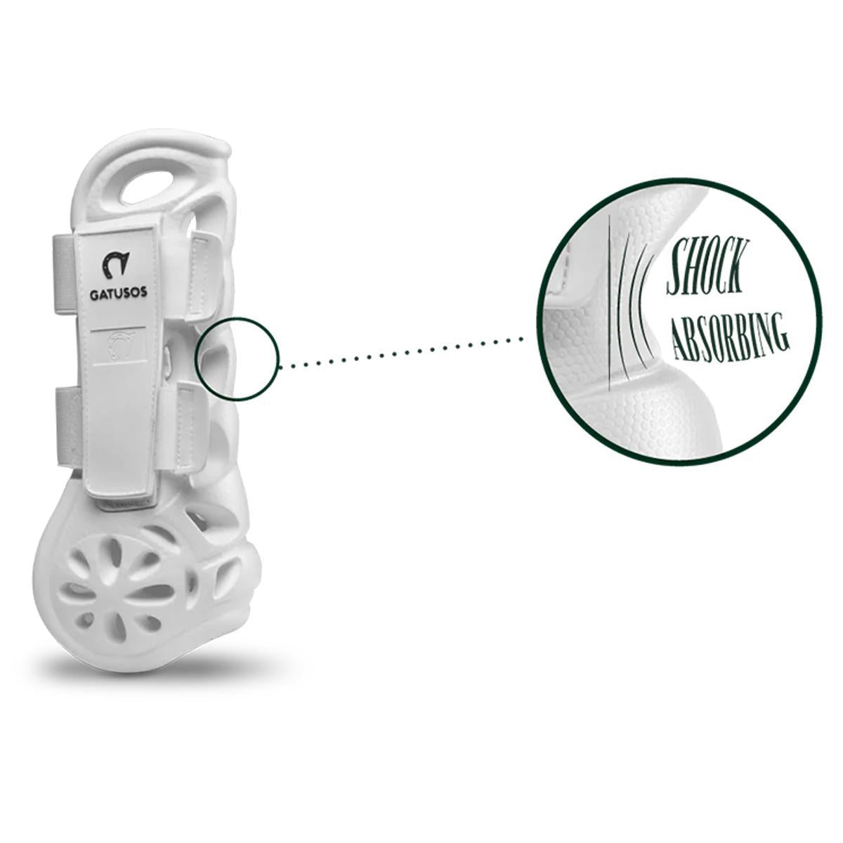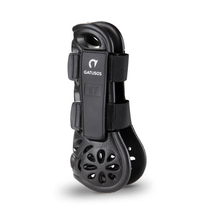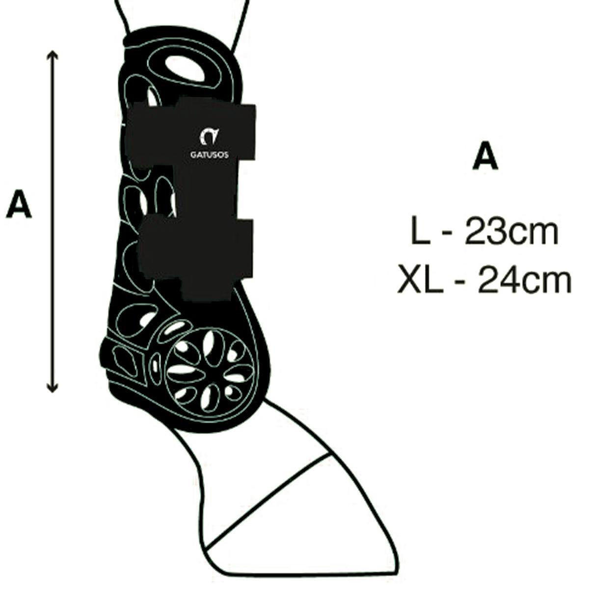 The Gatusos Front Air Horse Boot is a professional, ultra-light jumping tendon protector made with Eva Gumfly, a unique and revolutionary material in the industry. Its benefits include a ventilation system and an innovative design that prevents tendons from overheating. Weighing only 134 grams, it is ultra-lightweight and features instant wash and dry capabilities. Additionally, it is seamless, antibacterial, flexible, anatomical, impact absorbing, and extremely durable. Thanks to its ProMax fastening with double velcro closure, this protector offers an efficient and secure fit.
