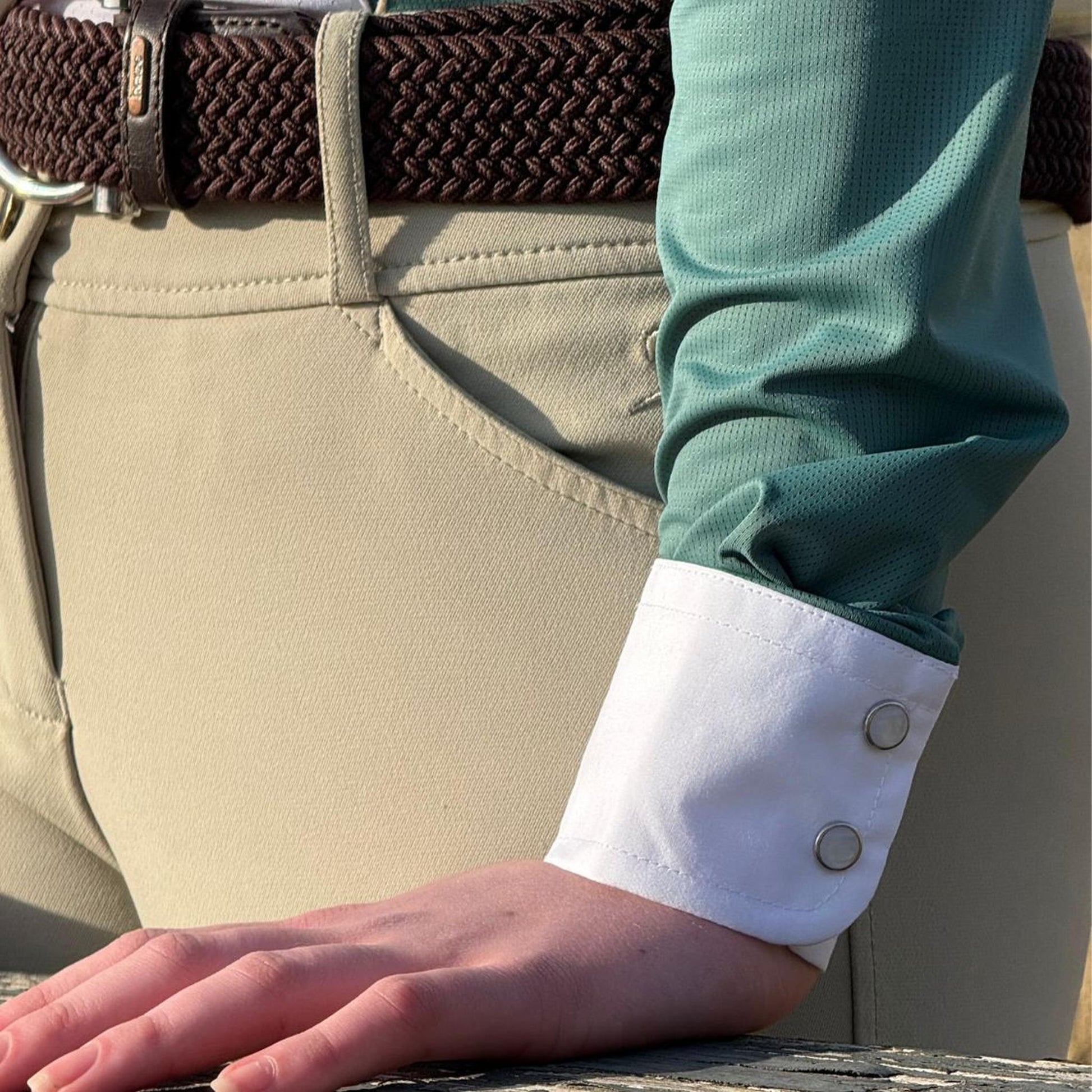 Essex Classics Girls "Luna II" Forest Green Self-Trim Long Sleeve Performance Show Shirt