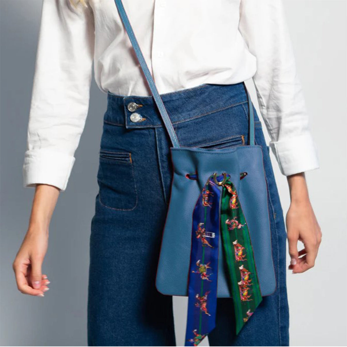 We love the pebbled leather design of this Scout crossbody pouch honors the grit and grandeur of the American west and Native American culture. The simple design is accentuated by the fine leather exterior and ultrasuede lining. Our specially-commissioned "Live Lucky" twilly and signature horseshoe cinch closure add a special touch to this leather pouch bag. The twilly has two sides, each depicting a type of equestrian lifestyle. The blue side showcases the refinement of English-style riding, while the green side honors the grand traditions of a western cattle drive. These handbags are unique in their simplicity. What is more, these purses will comfortably hold all of your essential items, including your phone, wallet, glasses, lipstick, and lasso. Saddle up and go for a ride!