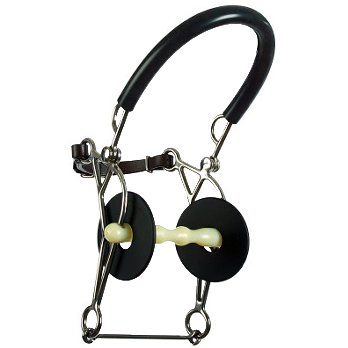 This Hackamore Bit combines the nose and poll pressure control of a hackamore with the stopping power of a gag bit. The pressure is dispersed over the horse's nose and head as well as at the mouth. Perfect for horses that stiffen or resist bit pressure.