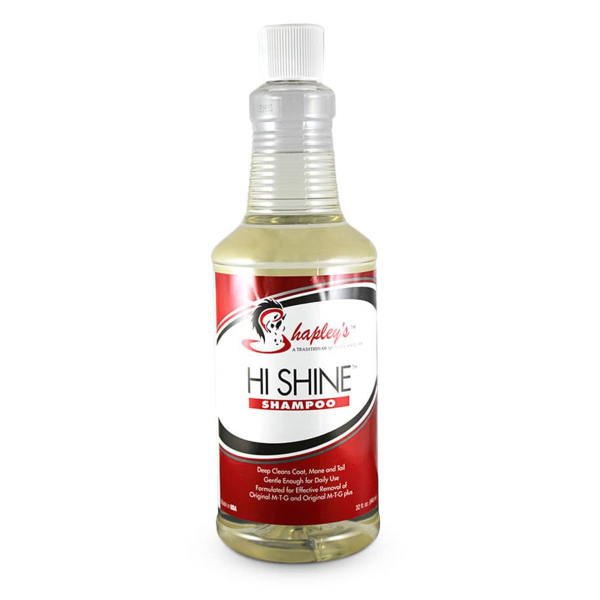 We love the Hi Shine shampoo because it is an outstanding clarifying shampoo that gently deep cleans horses hair. It produces a rich, foamy lather that rinses out easily leaving no residue even with cold water. Hi Shine will leave the coat, mane and tail squeaky clean, shiny and manageable, and is gentle enough to be used every day. Use several good squirts of Hi Shine in a bucket as are adding water from a hose to get lots of bubbles and get the shampoo mixed well with the water. Hi Shine can be applied directly to wet coats to get rid of tough stains. Hi Shine shampoo is specifically formulated to get Original M-T-G off a horses-coat, mane and tail when needed without stripping the hair of its natural oils. Hi Shine rinses out easily and leaves a beautiful shine to the horse's coat. When bathing a horse, use a rubber curry comb or rubber hand mitt gently to really get the horse scrubbed to the skin and clean.