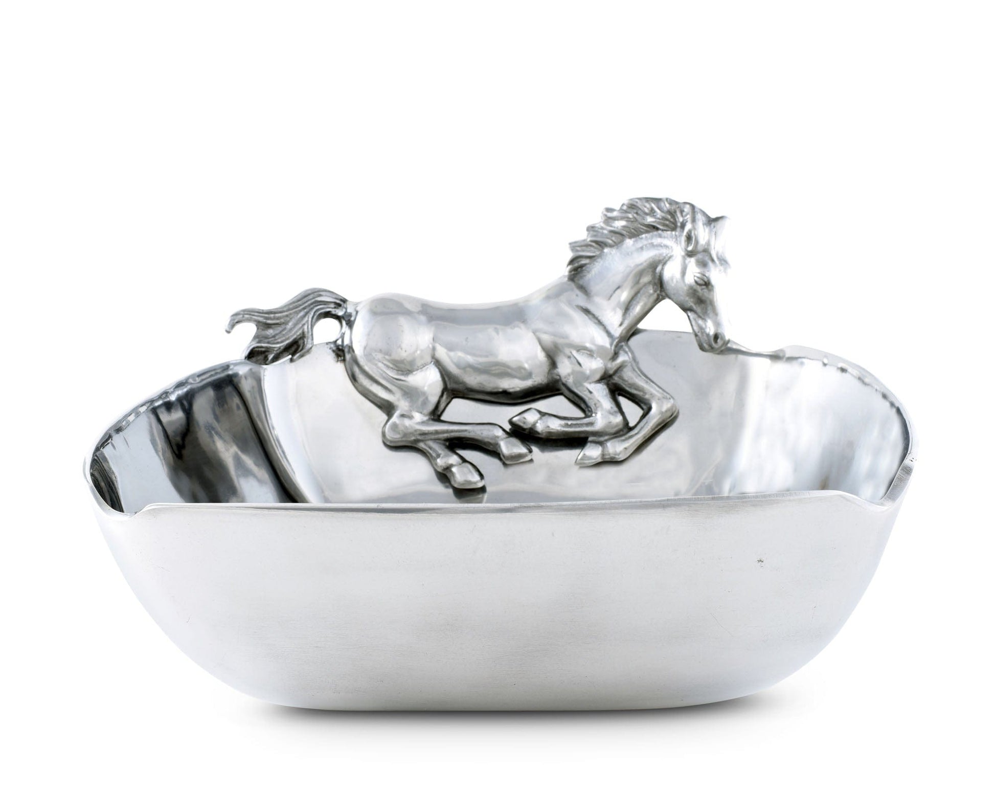 We love this Arthur Court serving bowl because of the spirited horse figurine that graces the edge of this bowl. Perfect for a fruit bowl, office candy dish or just adding some equestrian flair to your home decor.
