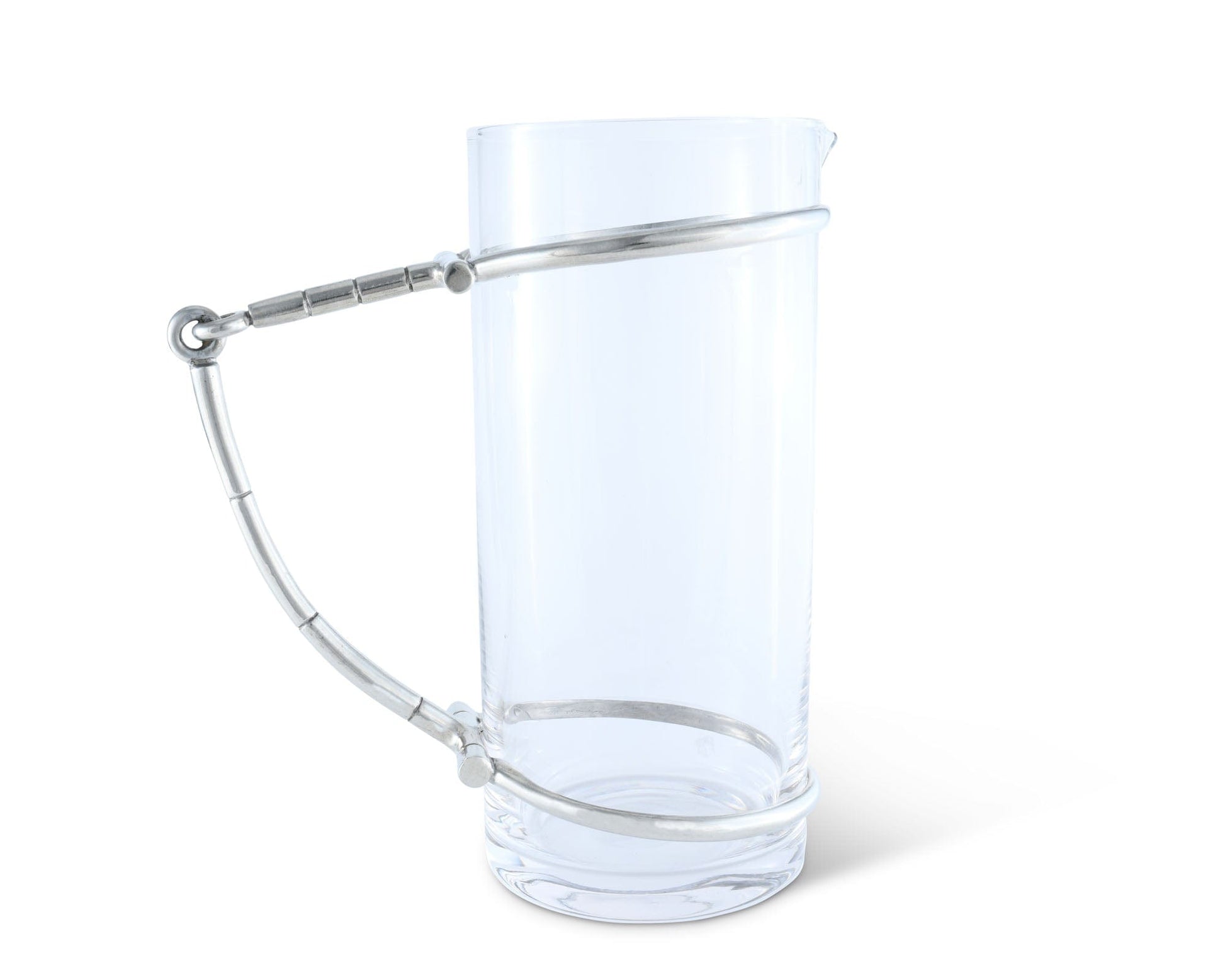 Perfect for serving race day refreshments, Vagabond House's Horse Bit Glass Pitcher offers a unique take on traditional drinkware. An enlarged snaffle bit secures its rings around each end of the cylindrical pitcher as its mouthpiece curves into a handle.