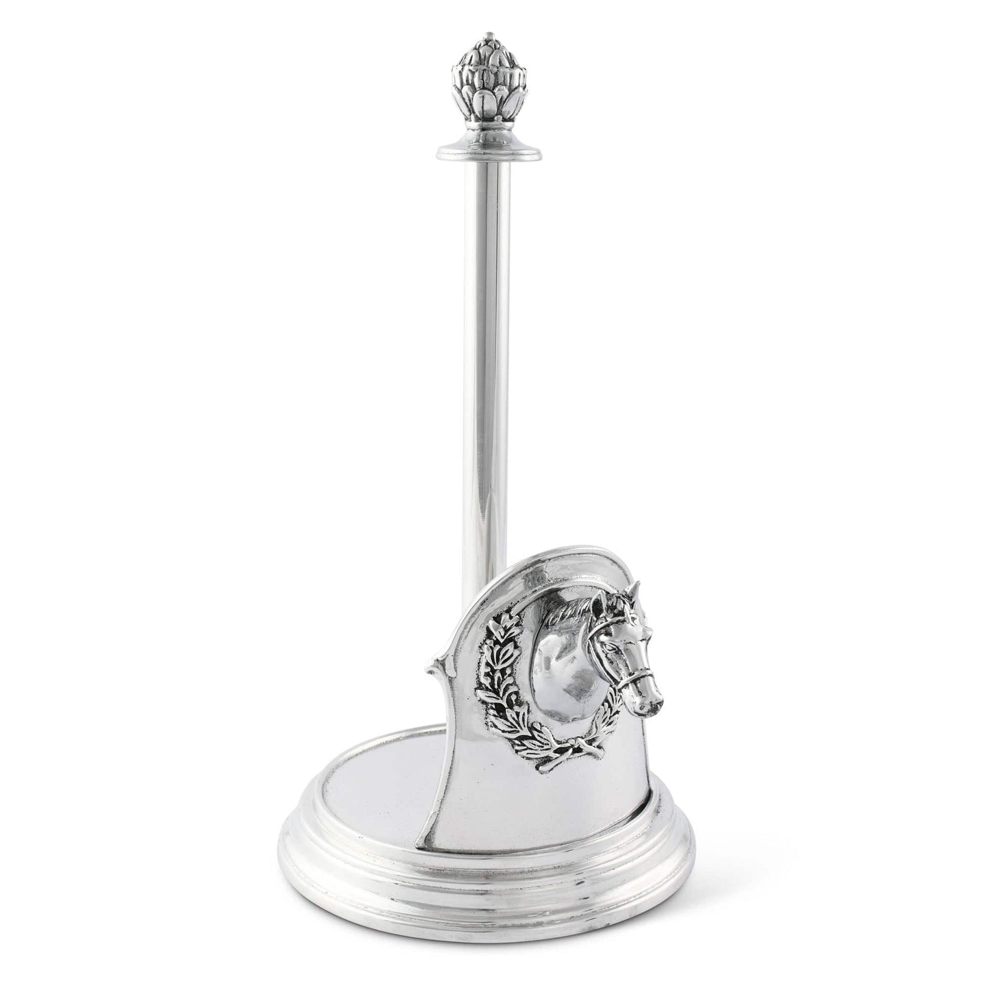 This equestrian-themed aluminum paper towel holder sports a botanical-inspired top finial for additional charm, and the sturdy base prevents toppling. A single center rod makes exchanging a new roll for an old one simple.