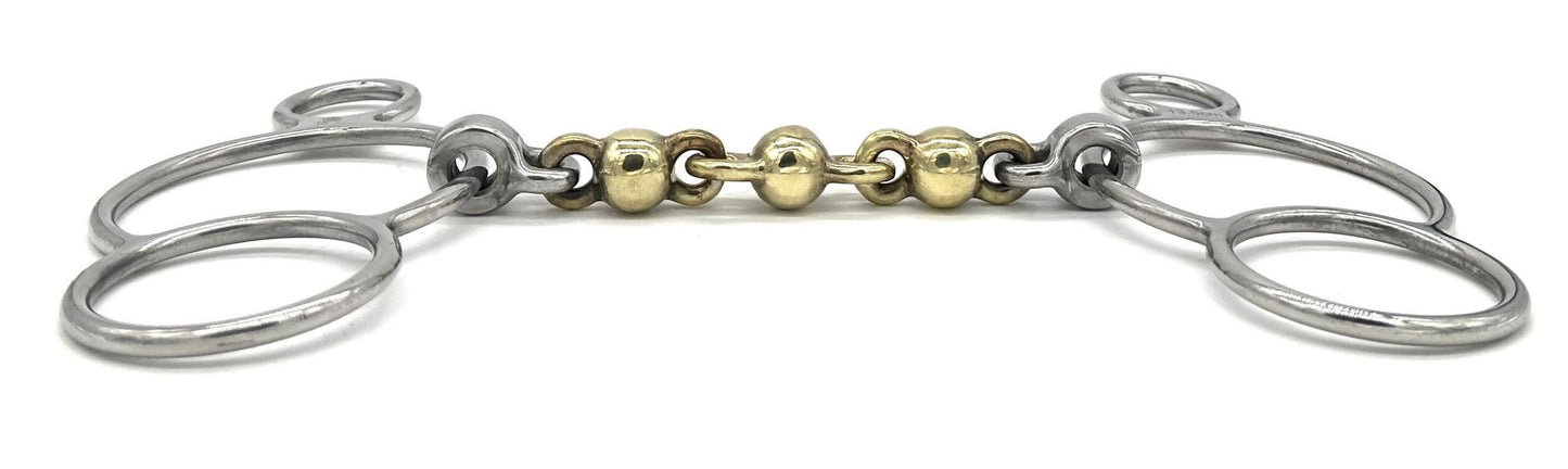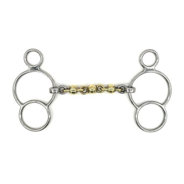 The Brass Waterford Two-Ring Bit combines the flexible, multi-link Waterford mouthpiece with a two-ring design, offering riders enhanced adaptability. The brass composition encourages salivation, promoting a softer mouth and better acceptance of