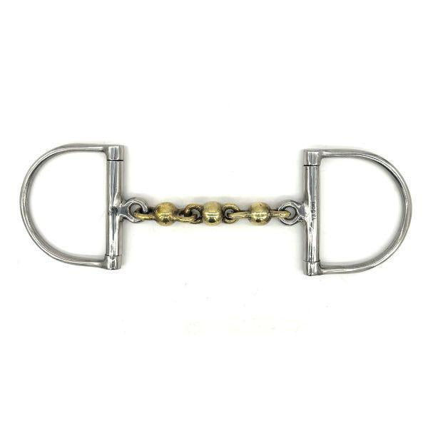 The Brass Waterford D-Ring Bit is designed to provide a balanced connection and flexibility for horses needing refined direction. The brass composition encourages salivation, promoting a softer mouth and improved acceptance of the bit. The multi-link Waterford mouthpiece adapts to the horse’s mouth, distributing pressure evenly to prevent leaning. The fixed D-rings offer stability, providing clear and steady guidance.