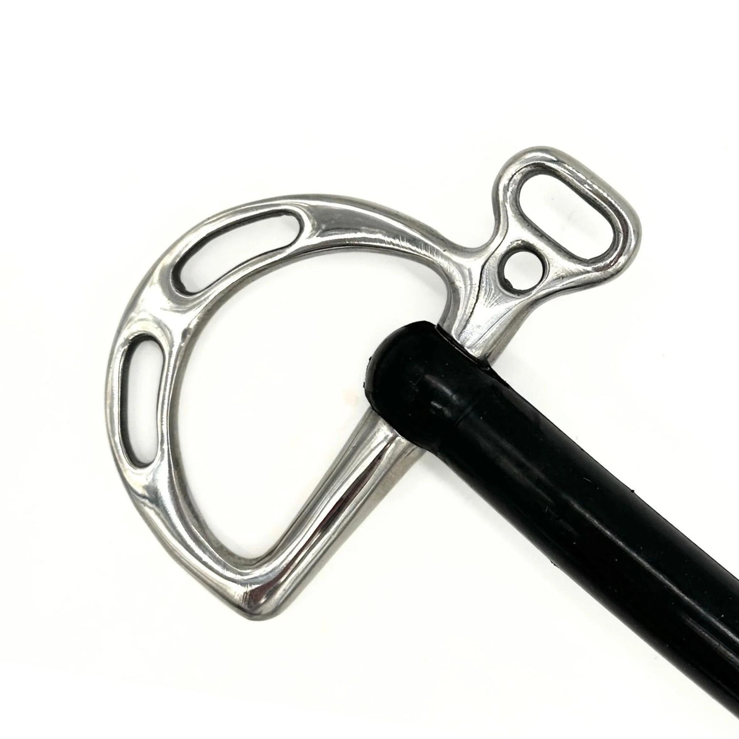 The Hard Rubber Mullen Kimberwick Bit features a solid mullen mouthpiece that evenly distributes pressure across the tongue and bars. The hard rubber material provides a stable and consistent feel, making it a suitable option for horses that benefit from steady contact. The Kimberwick design includes slotted D-shaped cheekpieces, allowing for slight leverage when used with the lower rein position, offering additional influence on head carriage when needed.